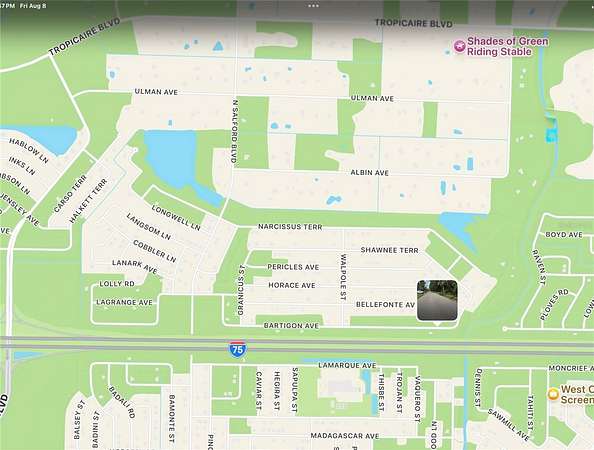 From I-75, exit north on Toledo Blade Blvd, to left on Tropicare Blvd, left on Salford Blvd, left on Nacissus Terr to right on Walpole St, to left on Bartigon Ave. The lot is on the left just past the home on the right and before the curve.