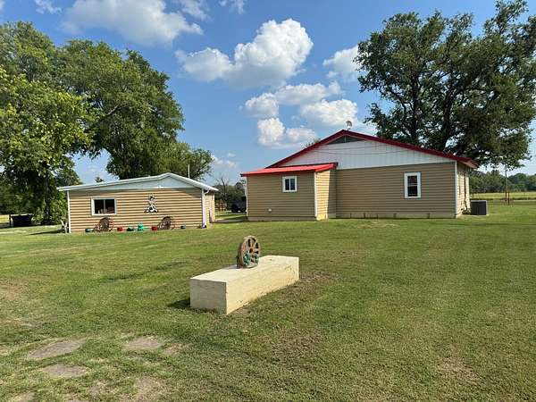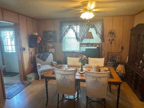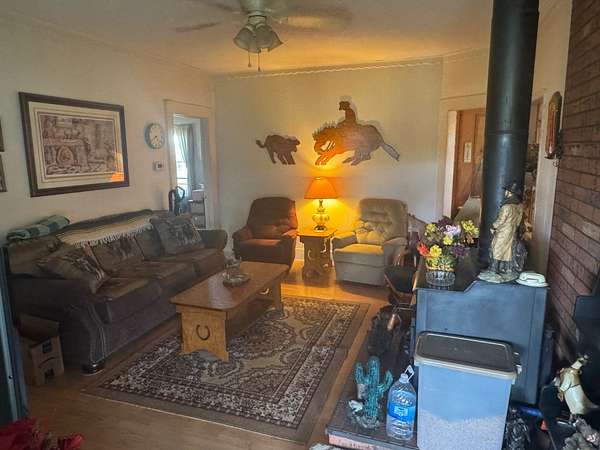 Est $1,682/moPRICE REDUCED!! Discover your dream property! This charming 3-bedroom, 1-bathroom single-family residence with a large covered front porch boasts 1,267 sq ft of cozy living space on a sprawling 3.5-acre lot-with a detached 2-car garage. Storm cellar. Enjoy outdoor bliss with a horse ranch, barn with electric, and stables on a paved county road.
