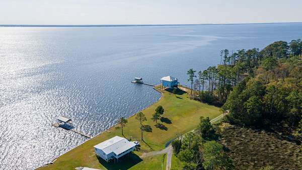 From Bath, head East on NC 92 E/Carteret St will become NC 99 N. Right on Kelly Rd. Right on Island View Rd. Left on Pinecrest. Left on Heath.