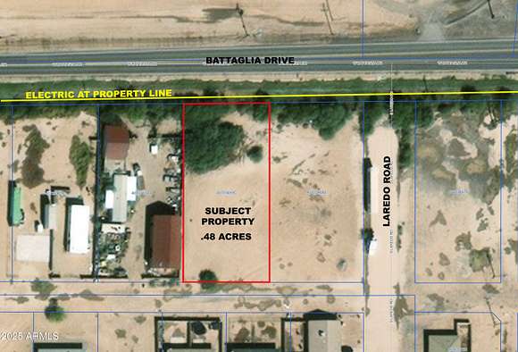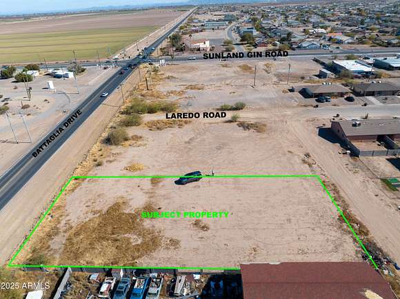 Est $1,059/moGreat Commercial lot with frontage on Battaglia, near the busy intersection of Battaglia Drive and Sunland Gin Road. Property features electricity, fiber optic and telephone at property line. Conveniently located between Tucson and Phoenix, 4 miles from I-10 and I-8 interchanges. This lot is ready for your new commercial venture! BUYER TO VERIFY SCHOOLS, ZONING / USE , UTILITIES, ACCESS & ALL PERTINENT INFORMATION. *Taxes shown in this listing are not accurate. Property was recently combined with another parcel. Please verify with assessor*