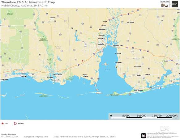 Est $2,860/moThis is a very nice commercial/investment opportunity in Theodore. There's a small residential development along the south line of the +/-20 acres.Great road access on Battiste Drive, off of Old Pascagoula Road. Minutes from I-10. Great soils.Possible residential or commercial development in the West Mobile/Theodore area.Buyer to verify all information during due diligence. Buyer to verify all information during due diligence.
