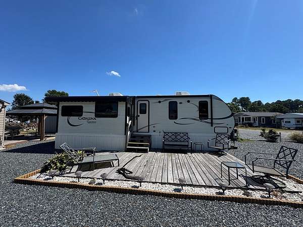 Nice sunny, stoned lot with septic, camper, and detached garage. Camper is a great shape. Includes access to pool, dock, fishing pier, crabbing pier, marina, clubhouse, boat ramp, boat slips, pavilion, and playground.