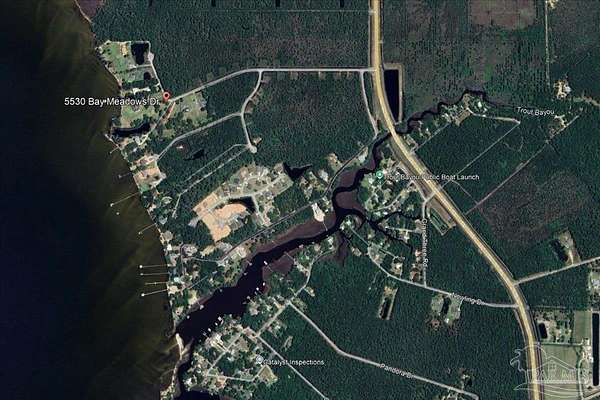 1-10 South on Avalon turn right on Bay Meadows drive. Large lot on the corner facing the Bay.