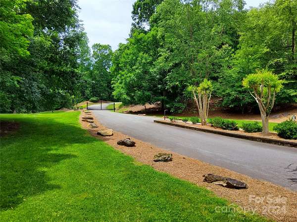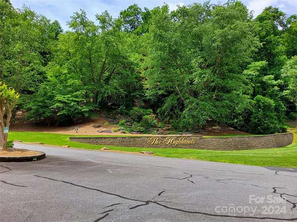 From Ingles Grocery Market, drive North on NC 9 to stop sign. Turn Left onto Memorial Highway and drive for 1 mile. Turn Left into Highlands gate entrance. Gate code required. Drive up Highlands Drive till you come to Bear Cliff Way on Left. This is a corner lot on Highlands Drive and Bear Cliff Way. You can access lot by walking down the gravel road which borders the lot. From Lake Lure Beach, drive 2.5 miles and turn Right into Highlands entrance at gate.