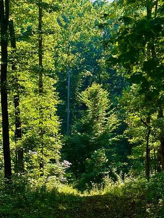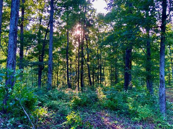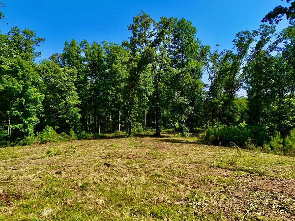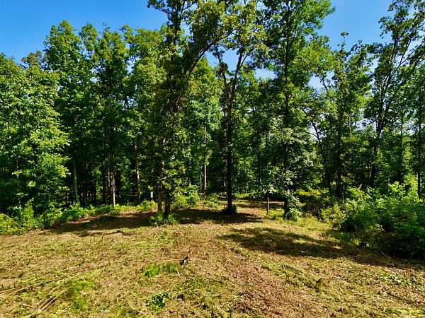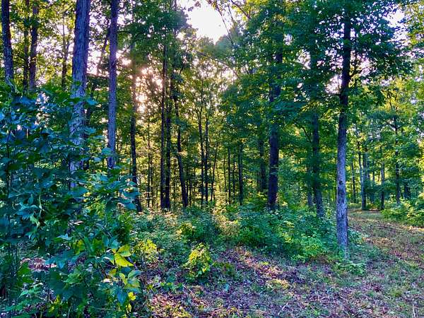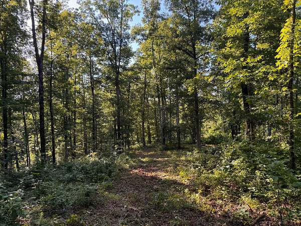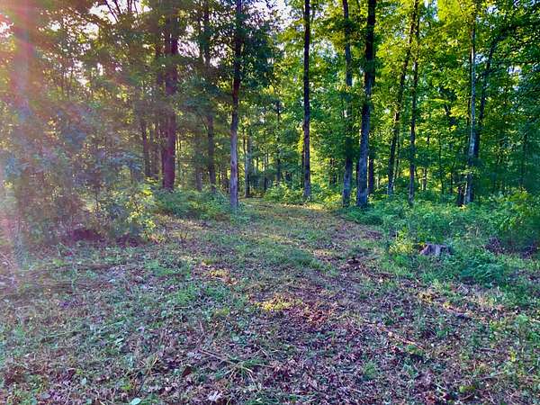 A flat and easily accessible building site is located near the front of the property, making development simple and cost-effective. The land is primarily covered in mature hardwoods including oak, hickory, and poplar, creating a scenic natural setting with abundant wildlife and year-round beauty.