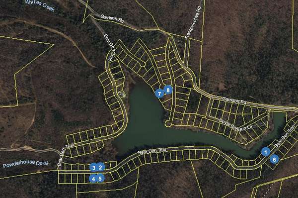 From Grandview, Travel NW on TN-68 for 3 miles Turn Left on Jewett Rd Right on Garrison Ln Left on Bear Den Trail Follow Loop