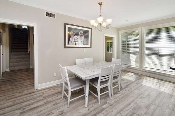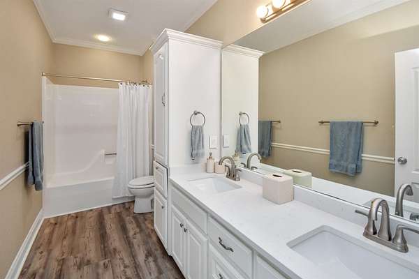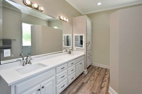 - Blinds/Shades, Bookcase, Breakfast Bar, Carpeting, Ceiling Fan(s), Draperies, Free Standing Range, Ice Maker Conn., Inside Utility Room, Luxury Vinyl Plank, Pantry, Primary Bedroom Down, SLD Surface Countertops, Sheetrock, Split Bedroom Plan, Tile Floors, Vent Fan