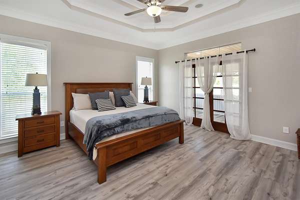 Waterfront home on a private lake with private boat ramp! This stunning 5-bedroom, 3-bath residence sits on 11.44 serene acres just outside of Beaumont, Texas in Fannett! Boasting over 3,600 sq ft, it features a spacious living room, sunroom, game room, with tons of natural lighting throughout. The open kitchen offers solid surface counters, breakfast bar, pantry, and updated appliances. The primary suite is a retreat with attached closet, double sinks, and separate shower. Interior highlights include luxury vinyl plank floors, a wood-burning fireplace, loft, inside utility room, split bedroom plan, and additional living area upstairs. Outdoors, enjoy multiple screened in porches, wooden deck, storage building, as well as an entire home generator. Complete with a 3-car garage, 3-car carport, water well/aerobic system. Located off FM 365 with iron gate and convenient I-10 access. Zoned to Hardin-Jefferson ISD. Experience privacy, space, and lakefront living schedule your showing today!