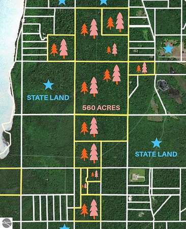 Over 560 acres of sprawling woodlands await your investment or future project. The seller of this property has put together a package of 10 contiguous parcels. State land abuts the property at various points and there are a number of access points to the property. Located west of Miller's Marsh, east of French Bay, and a few miles north of Iron Ore Bay. Some of the acreage has untouched virgin timber. The entire 560.7 acres can be purchased for 1.4 Million dollars or the seller may consider selling off parcels on the north or south end of the property separately. Individual parcels are available for purchase. Details to be provided upon request. The south end of the property has a deeded easement to the 48.97 acre parcel on French Bay, which is being sold separately (MLS#473677 ). See attached survey for specific measurements of each parcel. This could be an incredible opportunity for a Dark Sky preserve, or exclusive island retreat.