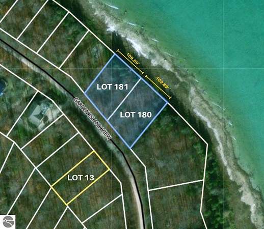 Offering two beautiful lots on Lake Michigan w/ bonus lot. The two lakefront lots are Lot 180 and 181 in the Port St. James. Each of these lots has 109.89' of private beach on Lake Michigan and each is being sold for $125,000 or you could combine the two for a reduced price. Combined these two lots to have 219' of frontage. This is a perfect location to build your island dream home! Close to town, Donegal Bay, and Font Lake. Lot 13 is an inland lot included in the sale as a dedicated location for the pump back septic systems that will be needed on Lots 180 and 181. If a Buyer is to purchase only one lot, a dedicated easement will be will be given for the pump back septic system. Lot 13 will be deeded to the remaining lot.