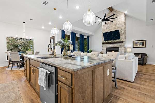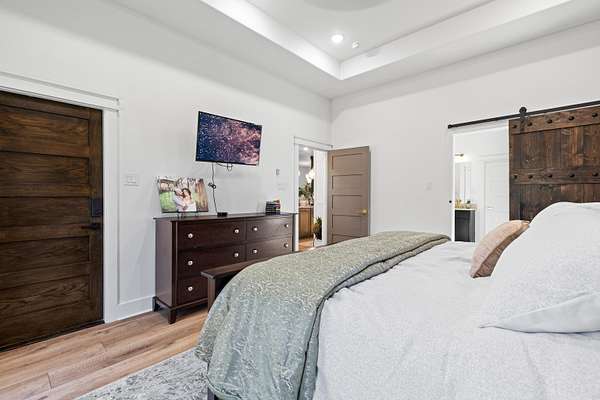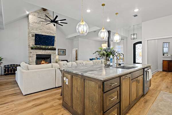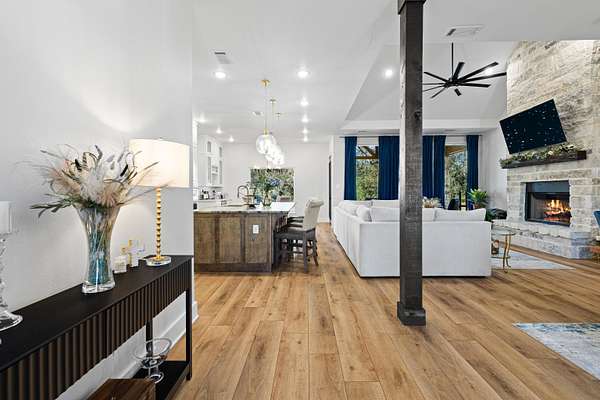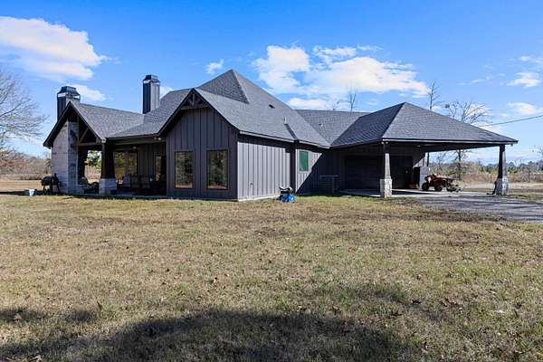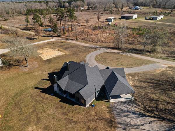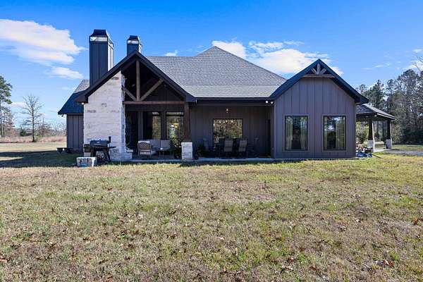Luxury living meets peaceful East Texas in this exceptional high-end home, built just two years ago in the heart of Beckville. This beautifully crafted 3-bed, 2-bath residence sits on 1.96 acres and features 2,110 sq ft of heated and cooled living space with 3,996 sq ft under roof, blending modern design with functional comfort. Inside, you’ll find tall ceilings, an open-concept layout, and premium finishes throughout. The chef’s kitchen impresses with Quartzite countertops, sleek porcelain surfaces with an invisible induction cooktop, high-end appliances, and a large island perfect for cooking and entertaining. The split-bedroom design provides privacy, featuring two walk-in closets, a spa-inspired primary bath, and a hidden security room for added peace of mind. Luxury vinyl plank flooring flows throughout, creating a warm, cohesive aesthetic. Outdoor living is equally elevated with a spacious covered patio and a beautiful outdoor fireplace—ideal for quiet East Texas evenings or entertaining guests. Quality craftsmanship is evident in every detail, offering a level of luxury rarely found in newer construction in this area. Located in the desirable Beckville community, this home provides privacy, upscale design, and convenient access to nearby amenities. A true standout. This is a corporate relocation listing. Schedule your showing today. Petra Davis ExP Realty (281)825-8153