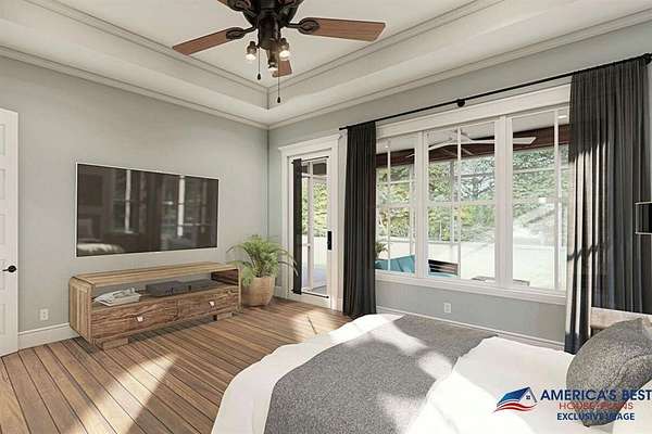 Welcome to Brock Eagle Country, where tranquility meets luxury in the prestigious Eagles Bluff community! This impressive, proposed Bedminster plan spans 2,589 sqft, 3 bed, 2 full bath, & a convenient half bath, along with a dedicated office fitted with well-dressed barn doors. Packed with features- split bedrooms, spacious porches, custom cabinetry and closets, Delta faucets, a concrete driveway, decorative mirrors, wall-mounted TV outlets, and hardline Ethernet ports. The builder has invested in high-quality details such as spray foam insulated walls and more. The garage is thoughtfully designed with can lighting, a smart MyQ side-mount garage motor, and an auto-lock system for added security. Enjoy NO PAYMENTS while you build with Zeal Home Builders, with an estimated completion time of 5-7 months. Step into the vaulted great room, a perfect gathering space where you can enjoy beautiful views of the rear porch. Culinary enthusiasts will delight in the well-appointed kitchen, which includes a large center island, an expansive pantry for all your cooking needs, & all the modern amenities. The owner’s suite features vaulted ceilings & abundant natural light, along with a generous walk-in closet for all your wardrobe essentials. The ensuite bath is designed for relaxation, boasting dual vanities, a separate soaking tub, and a spacious walk-in shower. 2 additional bedrooms share a well-appointed hall bath equipped with dual vanities and a beautifully tiled tub shower. Eagles Bluff offers upscale amenities designed for a relaxed lifestyle, including a gated entrance, underground utilities, and meticulously paved roads. Enjoy the natural beauty with spring-fed creeks and private fishing ponds, complemented by community pavilions perfect for gatherings. With access to high-speed internet, it's an ideal spot for remote work while enjoying the peace of country living.