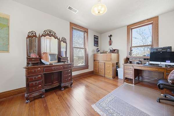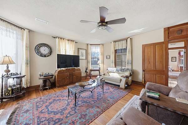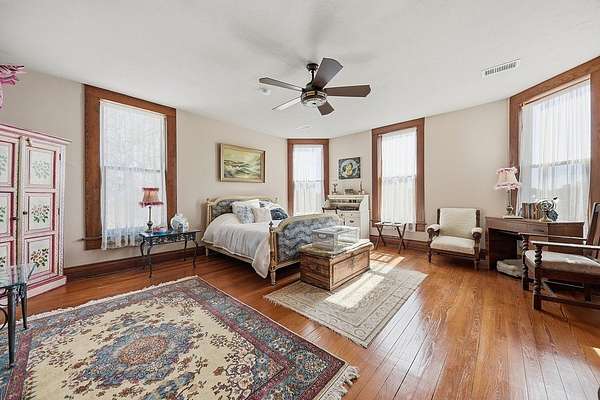 For the buyer who appreciates the craftmanship of bygone days this home will make your heart sing. Only 3 families have occupied this property since it's construction. The Von Minden's, a prominent local family built the home, it is believed, in the late 1880's. The current owners bought it a decade ago and have lovingly/laboriously restored/modernized this lovely Manor. Updated plumbing/electrical/foundation/insulation make the home comfortable. Many of the original details/features remain and those are what make this grand beauty a standout! Original wood floors, beadboard in both foyer's, grand staircase/maid's stairwell from the formal dining room/ kitchen. Wood windows/doors with original trim/stain, working transoms. Off the welcoming entry foyer is a generous sized living room/ formal dining room/ owner 's bedroom with ensuite bath. Travel through the dining room to the large kitchen with modern energy star appliances, an ample workstation island/ breakfast nook/ antique period cabinetry pieces/pantry. Laundry room/powder bath with stackable washer/dryer is located conveniently by the backdoor. Upstairs is a second cozy foyer another bedroom/ensuite bathroom that would be an option as a second owner suite, 2 more bedrooms and a guest bathroom. Additionally, there is an upstairs bonus room currently utilized as an artist studio. This home is ideal for a large family or could easily be a standout B&B for the many "antiquer's" that visit Fayette County biannually for the Antique show in the Spring/Fall. The 3 car garage can hold the family car and additional recreational vehicles. For the handyman/woman there is a large shop with attached implement, mower/gardening supply storage. All this situated on 1.23 aces. Schedule today, it is a home/property to behold! Please click link to explore home/ floorplan. https://visithome.ai/3FbfhjvcZomknTSg4EK5hW?mu=ft