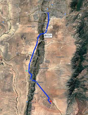 Some of the roads are unnamed which can make your first trip to the property tricky. Travel down Rio Communities Blvd until you reach this location: 34.542278, -106.631417. Then head southwest down the dirt road. Drive approximately one mile. You will hit a T-intersection. Take a left at this intersection and drive three miles. The road will eventually begin to curve left. Then take the next dirt road on your right. You should be able to find the property easily by navigating to the properties GPS coordinates 34.512167, -106.616025 once you turn off of Rio Communities Blvd. If you try navigating using the coordinates before you turn off of Rio Communities Blvd, your GPS may try to take you down the wrong road.