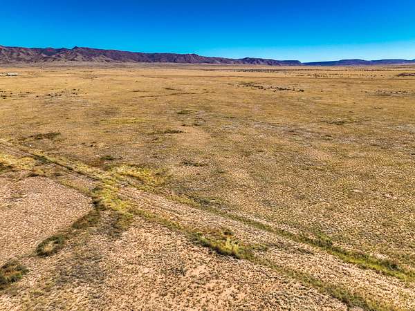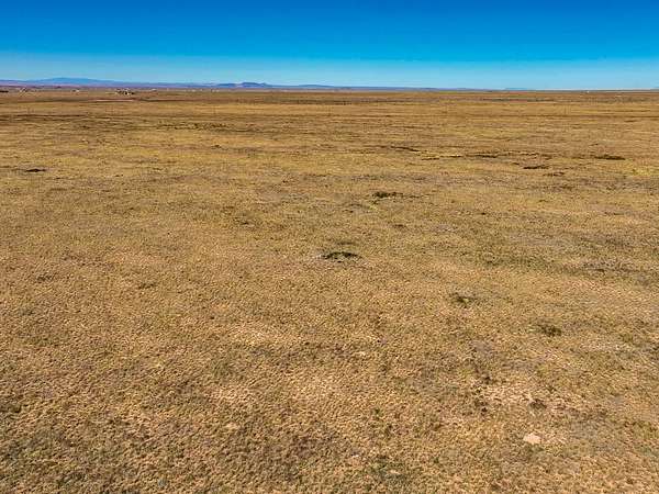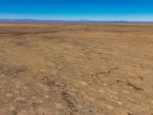 The land is mostly flat and open, with native grasslands, scattered juniper, and pinyon pine surrounding the area.