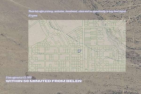 These three affordable lots, priced at just $2,000, offer an incredible chance to own land less than 50 minutes from Belen and right near the stunning New Mexico mountains. Whether you're looking for a smart investment, a future getaway spot, or simply the pride of owning land, these properties deliver unbeatable value. With peaceful views, open skies, and easy access to town while still giving you the privacy and freedom of rural living, this is the kind of opportunity that rarely comes at such a low price. Secure your piece of New Mexico's beauty before it's gone.
