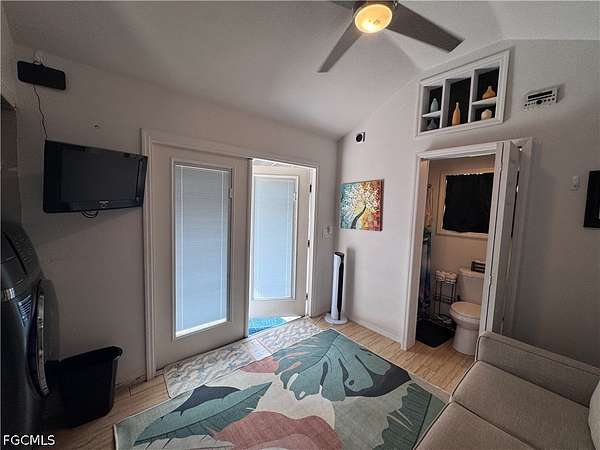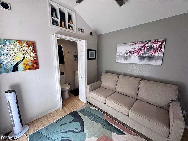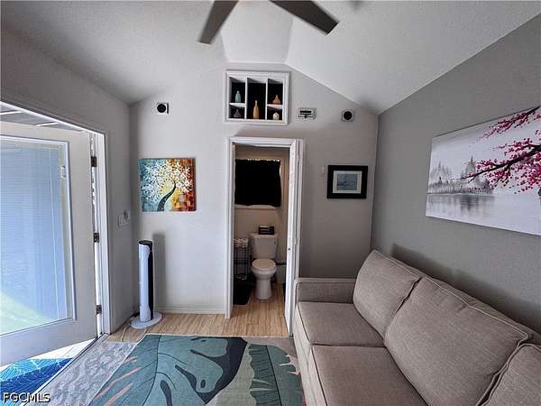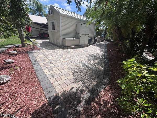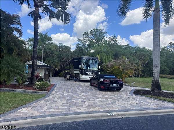 Lot 173 welcomes you with an immediate sense of openness, where space, sunshine, and thoughtful design come together to create a setting that feels both expansive and inviting. Positioned beside a generous common area, this property offers a rare feeling of breathing room, allowing you to enjoy wide-open views and a little extra distance from it all, while still being right in the heart of RiverBend Motorcoach Resort. Underfoot, brand new pavers flow seamlessly throughout the entire property. The design effortlessly defines multiple outdoor living spaces, including a spacious patio, a perfect spot for a grilling area, and an expansive setting perfect for entertaining, relaxing, or simply soaking in the Florida sunshine. A golf cart path adds both function and ease, making it simple to come and go as you explore the community. The coach house is accented by a distinctive black scalloped corner wrap awning, adding character and charm to the exterior. Inside, the space is comfortably modest, offering a bathroom and kitchenette, while remaining a blank canvas ready for your personal touch. Whether your style leans coastal, modern, or classic, this is an opportunity to create something that feels entirely your own. For those with a bigger vision in mind, the lot still allows ample room to expand. Should you choose in the future to build a larger coach house, there is space to do so while still maintaining the open, airy feel that makes this property so special. Beyond the lot itself, RiverBend Motorcoach Resort surrounds you in a vibrant, tropical lifestyle where every day feels just a little more like a getaway. Palm trees sway in the breeze as the Caloosahatchee River sets the scene for boating, fishing, and sunset cruises launched right from the private community ramp. Days drift easily between the resort-style pool and its lively poolside bar, while evenings invite you to unwind with friends, whether that's bourbon and cigars by the water, laughter at trivia night, or testing your luck at Texas Hold'em. For those who like to stay active, the community offers pickleball, bocce, shuffleboard, horseshoes, and a putting green, along with a fitness room and billiards. Unique touches like the R/C racetrack, hobby train, and R/C boating club bring a playful spirit that makes RiverBend unlike anywhere else. This is more than just a place to park your coach, it's a place to stretch out, settle in, and live fully. All that's missing is your motorhome and the memories waiting to be made.