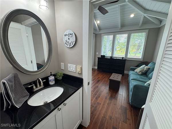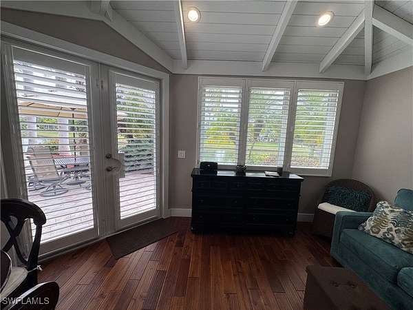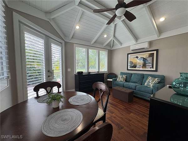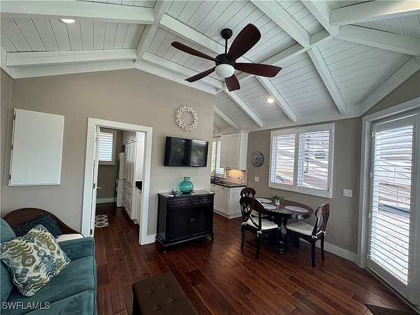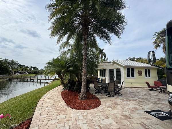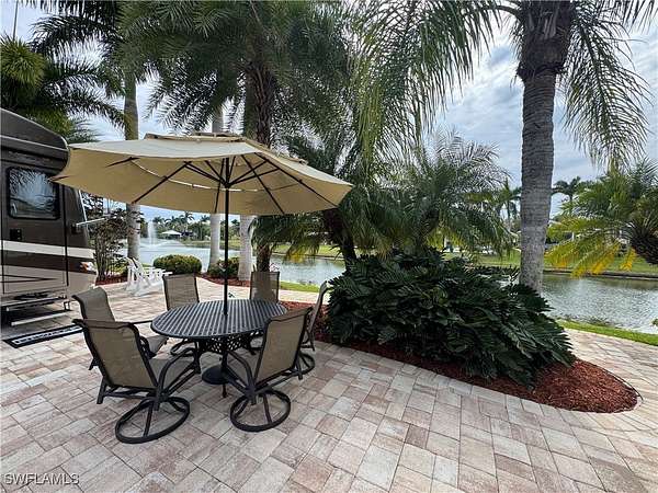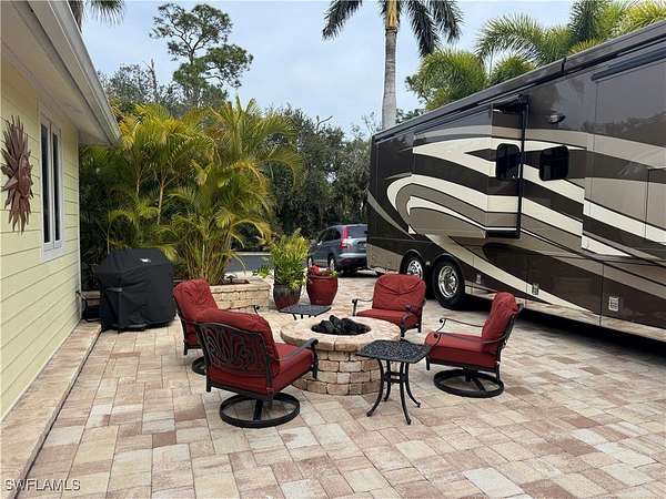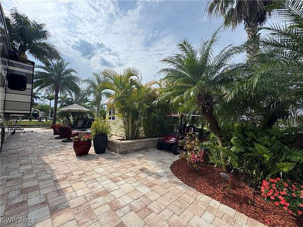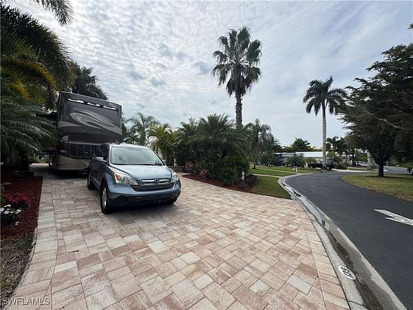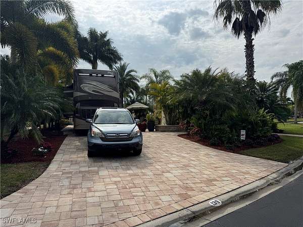 Lot 139 in RiverBend Motorcoach Resort. Experience the Best of RV Living at RiverBend Motorcoach Resort Welcome to Lot 139, a truly unique and private property located deep within the beautiful RiverBend Motorcoach Resort. This one-of-a-kind custom-built coach house is as cozy as it is functional, offering everything you need for luxurious Motorcoach living. Nestled next to a large common area, this lot exudes charm and seclusion. The lush Florida-style landscaping, featuring majestic palms, adds a breezy tropical touch. A spacious golf cart path enhances convenience while maintaining the lot's hidden-away feel. The outdoor ambiance is perfect for enjoying the serene surroundings. The custom coach house boasts a thoughtfully designed interior with an efficient galley kitchenette featuring elegant white cabinetry and rich black granite countertops, offering both style and practicality. The bathroom provides exceptional storage options, including a closet for hanging clothes, a washer/dryer, and more. For an added touch of luxury, the bathroom includes a foot heater to keep you cozy. The living and dining space features a comfortable sofa sleeper and a useful dining area, providing a perfect blend of functionality and sophistication. The intricate ceiling design is truly captivating, while the deep, rich tones of the flooring add warmth and elegance. Step outside to a fully furnished outdoor space designed for relaxation and entertainment. Highlights include a fire pit with large propane tank, perfect for toasty evenings under the stars, and an outdoor grill to elevate your culinary experiences. Landscape lighting bathes the palms in a gentle glow, creating a magical nighttime atmosphere. This property comes fully furnished, both inside and out. Simply bring your motorcoach, and you're ready to enjoy the best of resort living. RiverBend Motorcoach Resort offers an array of amenities for an unparalleled lifestyle. It is a golf cart and pet-friendly community with a private boat ramp and access to the Caloosahatchee River. The resort includes a large pool with poolside bar, hot tubs, and clubhouse, along with 8 pickleball courts, bocce, shuffleboard, putting green, and horseshoes. Additional features include an R/C racetrack, hobby train under the oaks, billiards, R/C boating club, exercise room, and community laundry facilities. Discover your piece of paradise at RiverBend Motorcoach Resort. Lot 139 is ready to welcome you to a lifestyle of comfort, luxury, and endless entertainment.