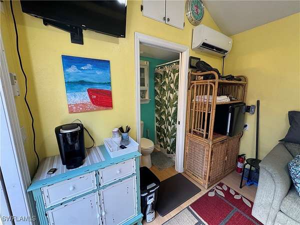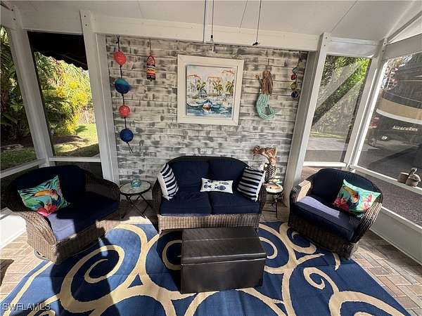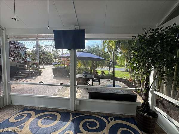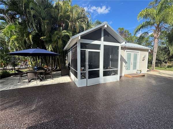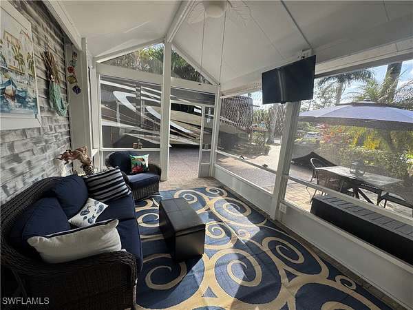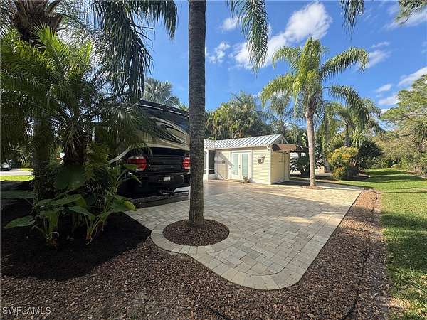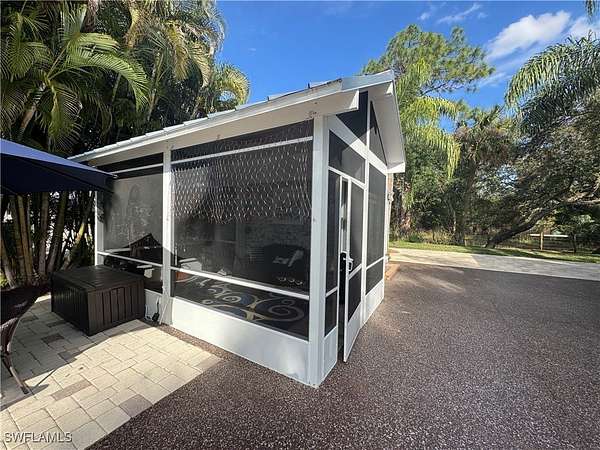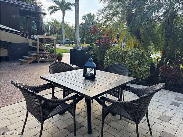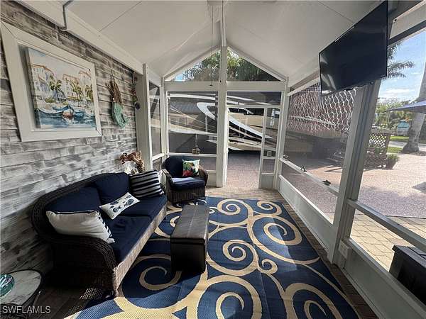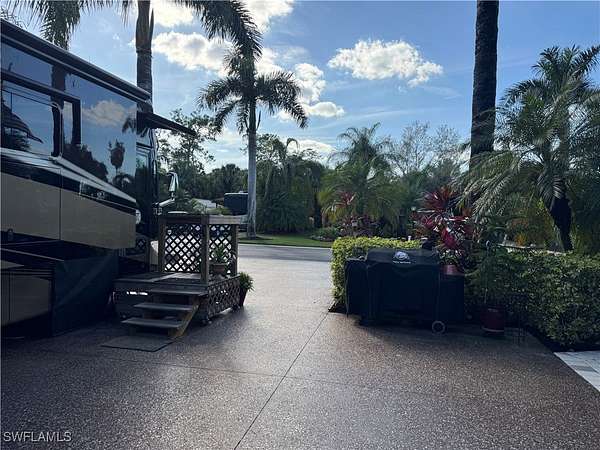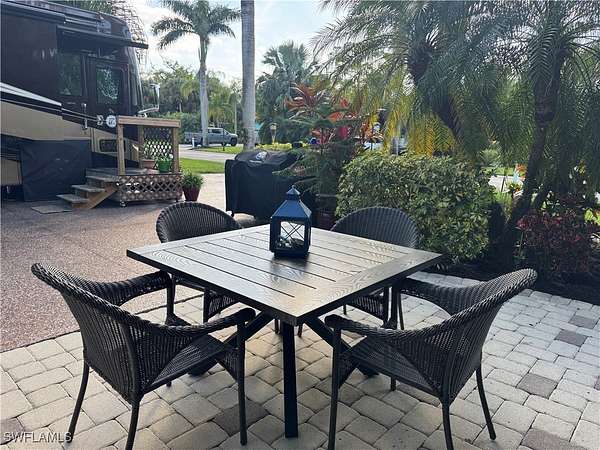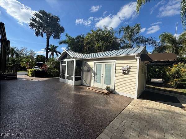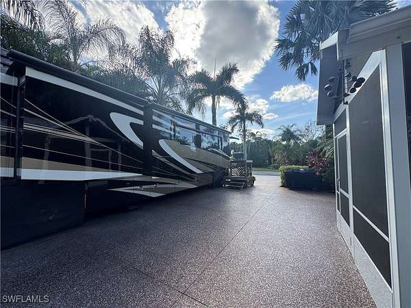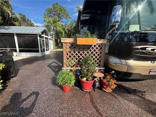 Lot 213 at RiverBend Motorcoach Resort is a beautifully updated property that combines comfort, style, and functionality. This spacious 65-foot-wide lot is larger than many others in the resort, offering ample room to relax and enjoy. The screen room provides the perfect mix of outdoor living and protection from the elements, allowing you to savor your morning coffee, watch TV, or entertain friends in a comfortable, bug-free environment. The property features a backyard, ideal for pets or quiet moments surrounded by nature, while the front lanai offers a delightful space for dining under the stars. The concrete pad has been enhanced with a newer overlay that adds both curb appeal and slip resistance. Surrounding the pad are additional pavers that give the property a polished, neat, and tidy appearance. The coach house is thoughtfully designed and includes a bathroom with a shower, making it a convenient and welcoming retreat for owners and guests alike. Nestled in tropical elegance, RiverBend Motorcoach Resort is more than a destination-it's a lifestyle. This pet and golf cart-friendly community is surrounded by lush greenery and towering palms, creating a tranquil yet vibrant atmosphere. Residents enjoy a wide range of amenities, including a resort-style pool, pickleball, shuffleboard, bocce ball, a putting green, and a private boat ramp that provides access to the scenic Caloosahatchee River. The heart of RiverBend lies in its welcoming community, where lifelong friendships are forged, and cherished memories are made. Lot 213 offers the perfect opportunity to join this vibrant paradise and experience a harmonious blend of leisure, adventure, and camaraderie.