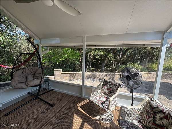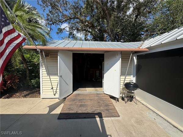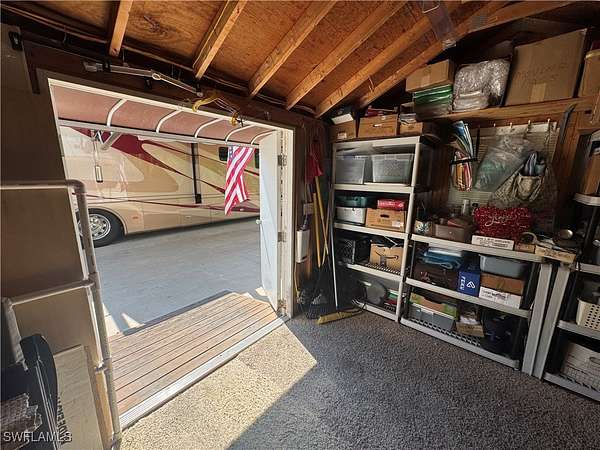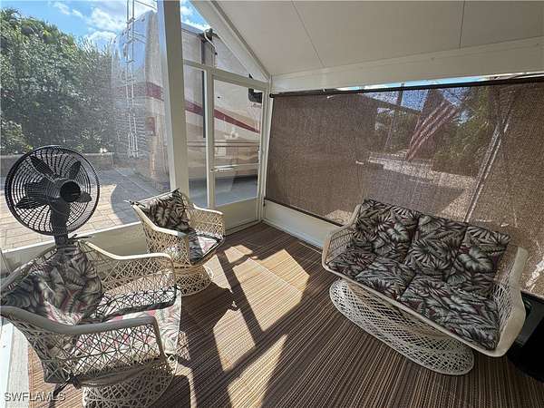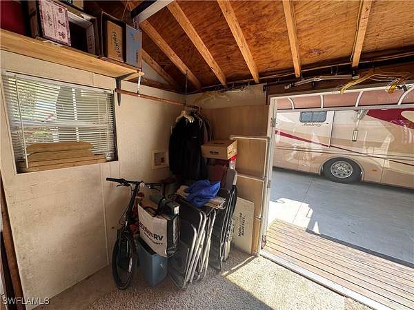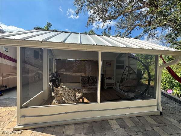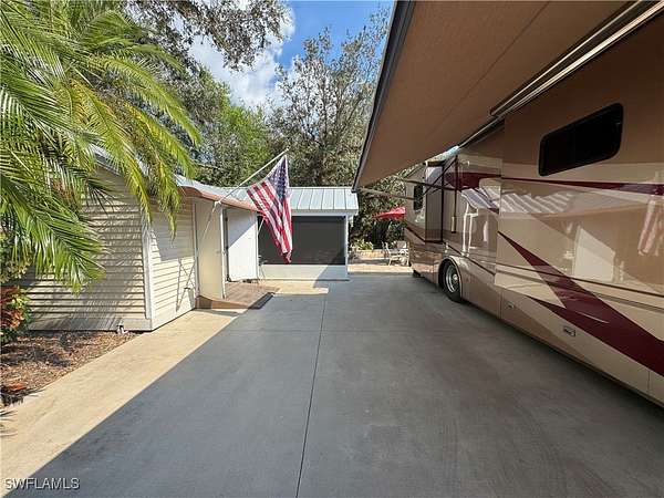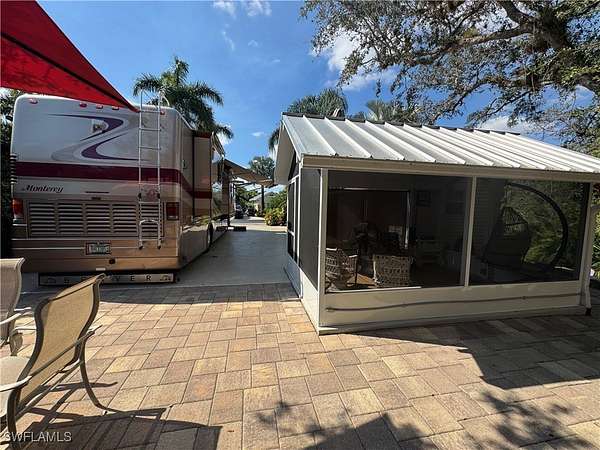 Lot 227 - A One-of-a-Kind Retreat in RiverBend. Nestled deep within the resort, Lot 227 offers a rare blend of privacy, nature, and resort-style living. This back-in lot boasts a lofted creek view, creating a peaceful and picturesque setting. The 10' x 16' coach house is unfinished inside, offering a blank canvas for customization. Currently used for storage, a workspace, and golf cart parking, it features a ramp to dual doors for easy access and includes a washer/dryer hookup. Adjacent to the coach house, the multi-use screened room provides a cool, shaded retreat, perfect for relaxing without the nuisance of pests. The outdoor space is just as inviting, with a charming knee wall bordering the back of the property. A dining area with a table, umbrella, and six chairs sets the stage for al fresco dining at its finest. Enjoy ultimate privacy with a lush hedge separating you from your neighbor on one side, and no neighbor on the other. At RiverBend, every day feels like a vacation. Beyond its stunning natural beauty, the community fosters lifelong friendships and offers top-tier amenities. A private boat ramp provides direct access to the scenic Caloosahatchee River. The clubhouse and bar serve as a welcoming hub for social gatherings. Recreation opportunities abound with a resort-style pool, cabana bar, and two hot tubs. Sports and outdoor activities include eight pickleball courts, bocce, shuffleboard, and a beautifully maintained putting green. For hobby enthusiasts, the community features an R/C racetrack, a charming hobby train beneath the oaks, billiards, and an R/C boating club. Recognized as one of the top luxury RV resorts in the country, RiverBend is more than just a destination-it's a lifestyle. Embrace the beauty, adventure, and sense of belonging that make this community truly special. Lot 227 isn't just a place to park your coach-it's your gateway to paradise.