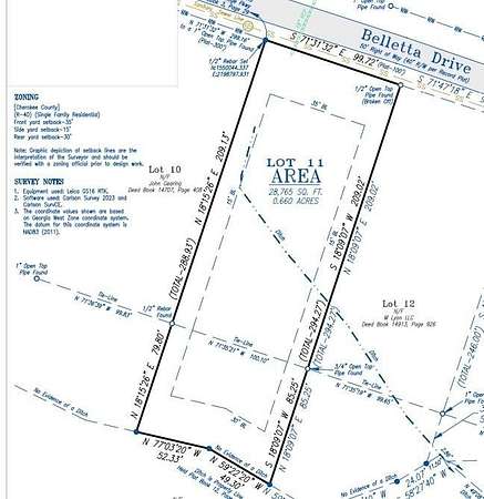 575 to Riverstone Parkway. Right on 140/Waleska Rd, right on Belletta Dr, lot on right. Lot is located between houses with addresses of 231 and 301. Lot 11 is on right. (Lot 12, also available is adjacent lot on right after lot 11.)