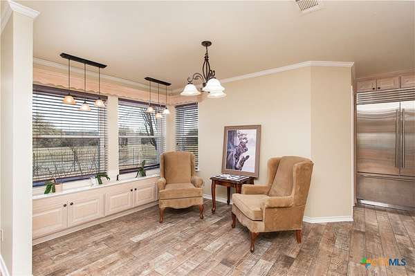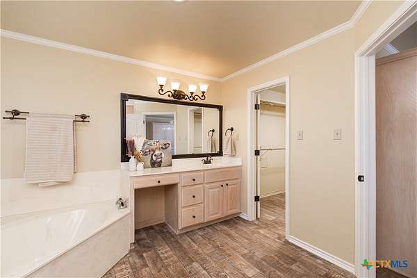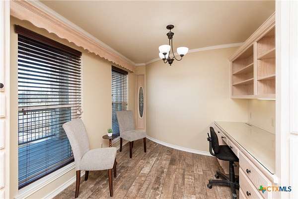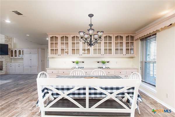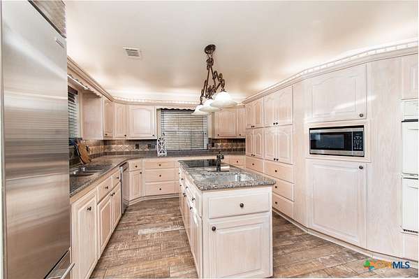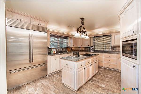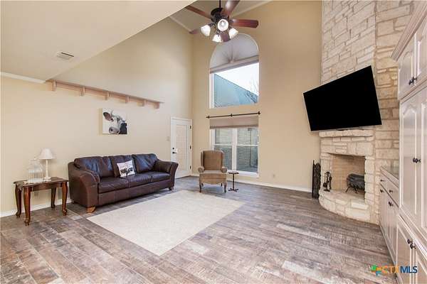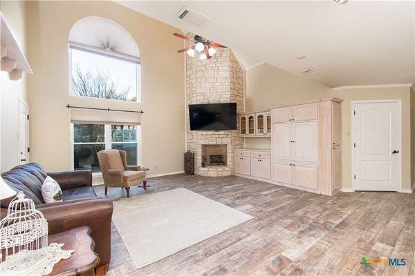 Escape to this remarkable two-story home tucked among towering trees on 4.587 acres of tranquil countryside. A welcoming covered porch invites you inside, where a beautifully designed layout awaits. The chef's kitchen features a Sub-Zero refrigerator, island, abundant cabinetry, and a butler's pantry. The breakfast nook includes a unique plant cabinet with built-in water and drainage and connects to the formal dining room accented by stunning built-ins. The impressive living room boasts vaulted ceilings and expansive windows that fill the space with natural light. The main-level primary suite offers a peaceful retreat with a jacuzzi tub, walk-in shower, and generous walk-in closet. A guest bathroom and a well-appointed laundry room with a sink and hamper cabinet complete the first floor. Upstairs, two spacious bedrooms with large closets and a full bathroom provide comfortable accommodations for family or visitors. A dedicated storage room offers flexible space perfect for the sports or hobby enthusiast. Additional highlights include a Generac generator, five-car garages with extensive shelving, a fully functional one-bedroom guest house/mother-in-law suite with a kitchen and full and half bathroom-ideal for guests or potential rental income-and a separate game room. Enjoy the best of country living with the convenience of nearby amenities. Located just 5 minutes from Belton and 15 minutes from Killeen/Ft. Hood. Additional acreage available. Total combined square footage for the main home, guest house, and game room is 4,164 sq. ft., featuring 4 total bedrooms, 5 full bathrooms, and 4 half bathrooms. Additional 17.5+- acres with horse barn available.