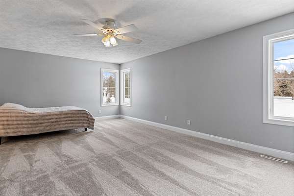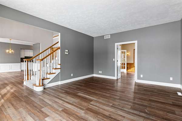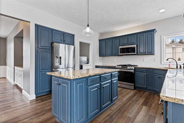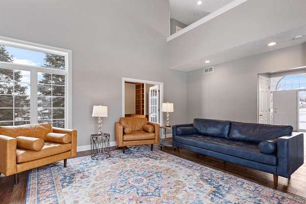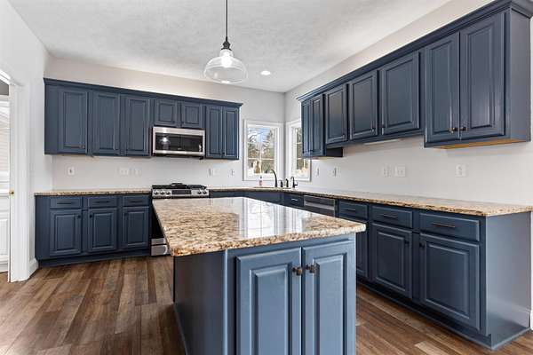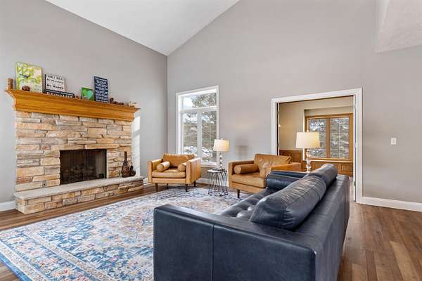 Looking for a spacious 5 Bedroom home on a large lot. Lot's of space inside & out. Convenient location too! Double doors into the main floor office, den, or study with a wall of built-ins. So many things new & updated, almost all windows and sliding glass doors. Newer roof & gutters (2019). In 2025 a new furnace & air conditioner. Newer water heater, newer driveway, newer sprinkler system for entire yard. Newer flooring, new carpet, many rooms freshly painted. Impressive 2-story foyer as you walk in. Open kitchen with center island, stainless steel appliances, updated lighting, granite countertops, pantry, abundant cabinetry, large eating area with sliders out to deck, light & bright. Butlers pantry opens up to formal dining room. 2-story family room with vaulted ceiling & a fireplace surrounded by stone and with remote control. Master Bedroom with it's own bathroom with double vanity, whirlpool, tile flooring, and huge walk-in closet. Lot's of windows letting in natural light in the exposed lower level with 2nd family room with fireplace & wet bar. 5th bedroom and full bathroom with heated floors. Newer washer & dryer. Flagstone path in rear yard.