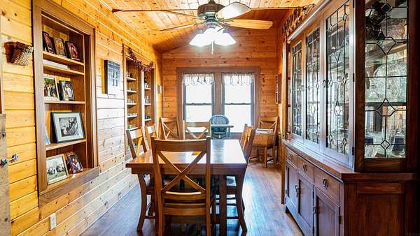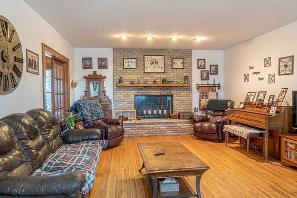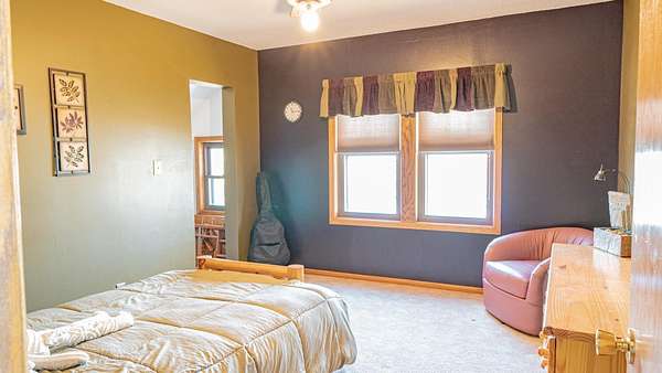 Est $2,456/moNicely updated 6 bedroom 2 full bath acreage on 5.5 acres in Grundy County. Main floor of the original house was taken down to the framing in 1991, wiring, plumbing, insulation, windows, trim and cabinets were all updated. There is a large log great room with fireplace added in 2005. Mini splits are being replaced in the great room. This home has great space for entertaining. There is a 60ft x 110ft pole building with heated shop space and a bathroom. House and Shop on rural water. Solid income from the grain storage as well. Bins have 3 phase electric.