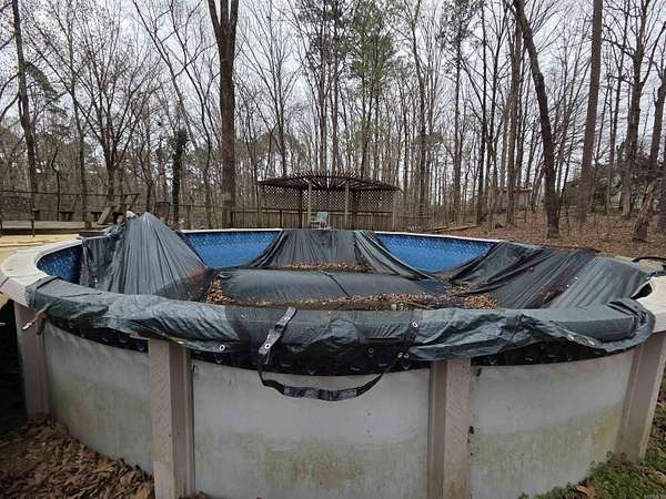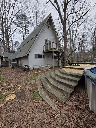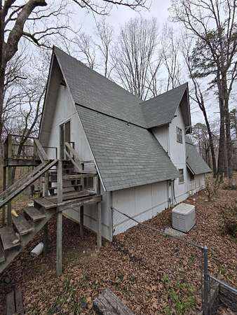 Tucked away among the trees on 2.25 acres, A-frame home offers the perfect blend of privacy and character. Located outside city limits, you’ll enjoy a peaceful, secluded setting while still being within reach of town. The unique layout features a cozy yet functional design, including an inviting upstairs retreat complete with its own private bathroom—ideal for guests or a primary suite. Step outside to relax or entertain around the above-ground pool, surrounded by nature. If you’re looking for a distinctive home with space to unwind and room to breathe, this house is a must-see!" This Property is sold "As Is". Newer Roof, Newer A/C Unit, Generac Generator.