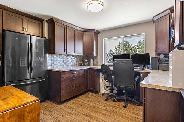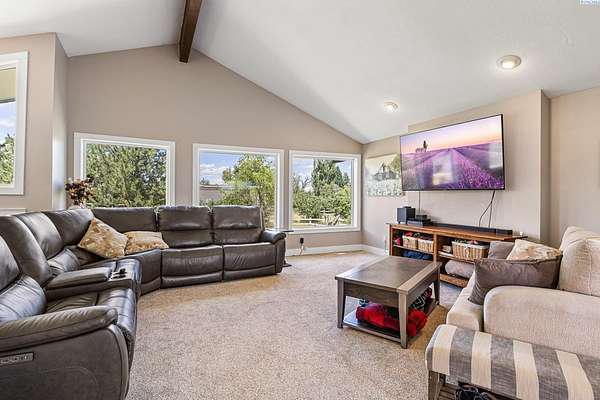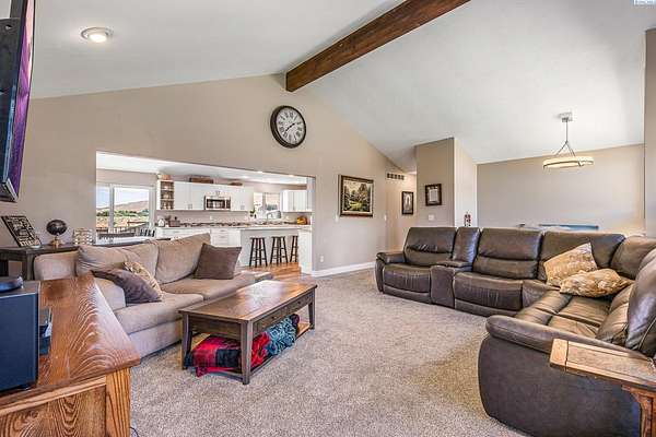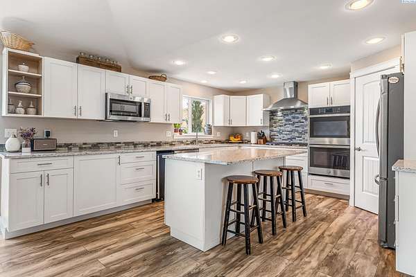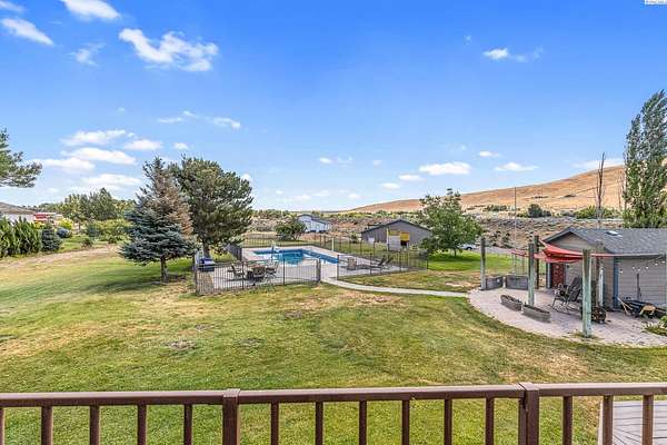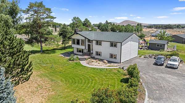 Discover the lifestyle you've been dreaming of in this captivating country retreat set on 2.72 acres of pure possibility. This thoughtfully updated 1980s classic offers 3,054 sq ft of inviting living space--where timeless character meets modern comfort. With 5 bedrooms, 3 bathrooms, and a 4-car garage, there's room for everyone and everything. Step into the expansive living room, where three oversized windows frame ever-changing views--dramatic Tri-City storms, peaceful birdwatching, and the quiet beauty of wildlife roaming the front yard. The light-filled kitchen features abundant cabinetry and a generous breakfast bar, making it the heart of the home for gatherings and everyday moments. As evening falls, savor spectacular Tri-City sunsets from the dining room or unwind on the expansive back patio overlooking a beautifully landscaped yard with mature shade trees. Your private backyard oasis delivers resort-style living with a sparkling pool, sport court, and hot tub deck--perfect for entertaining, relaxing, or making lifelong memories. The bonuses continue: a barn, large shop, and pond open the door to hobby farming, woodworking, storage, or creative pursuits. There's also ample space for RV, trailer, or boat parking, making this property as functional as it is serene. Ideal for multi-generational living, the downstairs offers generous spaces, including a rec room with room for a pool table and direct access to the picturesque yard. Whether you're gardening, swimming, hosting, or simply enjoying the peace and privacy of acreage living, this home truly has it all. Pool. Barn. Shop. Acreage. Space. Privacy. This is more than a home--it's a lifestyle. Come experience it for yourself and make this extraordinary retreat yours.