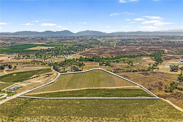 This vineyard is one of the best available sites for a custom home or winery that is available in the Temecula Wine Country. Zoned "Wine Country - WC", with a mature vineyare, existing water meter, fire hydrants located in the street, electricity available adjacent to the parcel - this will be the perfect parcel for your Winery area project. The topography is beautiful and gentle, and will require very little grading for a home or winery location.