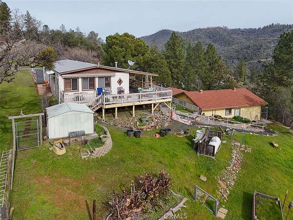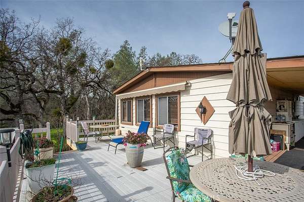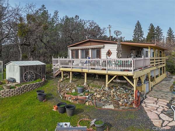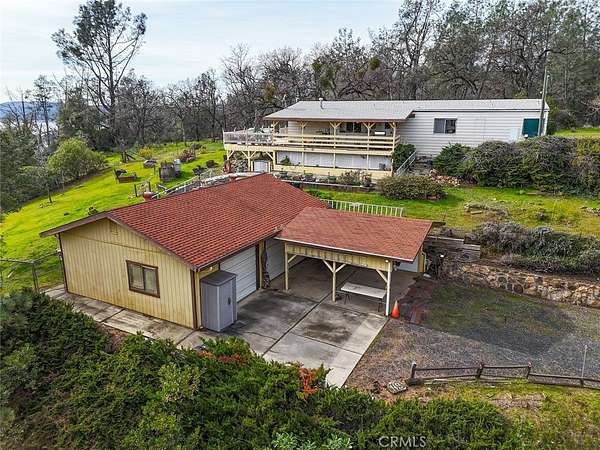 Perched on a hilltop with stunning panoramic views of the Lake Oroville, this charming 2-bedroom, 2-bath manufactured home offers the perfect blend of comfort, privacy, and natural beauty. Set on a generous 2.12-acre lot, the property provides ample space for outdoor recreation, gardening, or simply enjoying the peaceful surroundings. You’ll appreciate the huge 3-car garage, large covered carport, and additional RV parking, providing exceptional storage and flexibility. The home has received several upgrades in recent years, including updated kitchen with stainless appliances, roof and HVAC system, offering peace of mind for years to come. Inside, the spacious layout features an open living room with a cozy gas fireplace and large windows that frame the breathtaking views. The inviting living area flows seamlessly into the kitchen and dining spaces, making it ideal for entertaining or relaxing at home. Step outside onto the expansive deck—complete with a powered retractable awning—and take in the sweeping vistas of the hillside and lake. Whether you’re hosting gatherings or enjoying quiet mornings, this outdoor space is truly a highlight. For outdoor enthusiasts, the location is unbeatable. Just minutes from Lake Oroville, you’ll have endless opportunities for boating, fishing, hiking, and exploring. Despite the serene setting, the home is only about 30 minutes from town amenities, hospitals, and Highway 70, offering both tranquility and convenience all on paved Rd access. With 1,440 sq ft of living space and unmatched views, this property presents a rare opportunity to own a slice of paradise overlooking Lake Oroville and the surrounding landscape. Don’t miss your chance to experience this exceptional home at an affordable price. Call today for a private showing.
