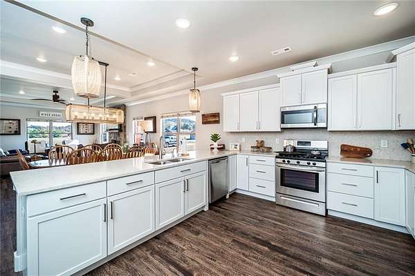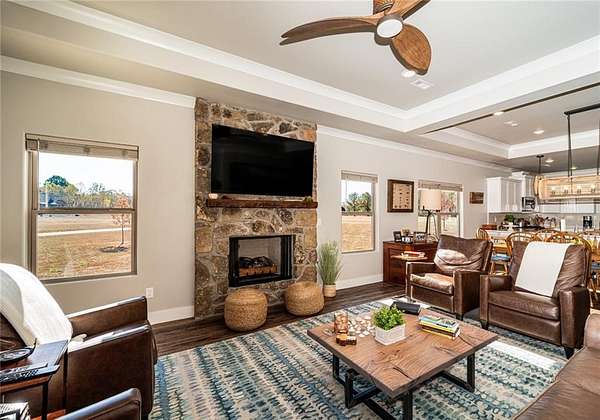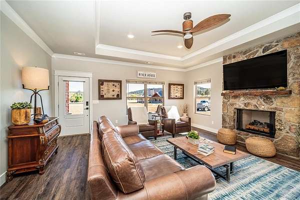 Relax and enjoy the tranquil Kings River just steps from your front door! Enjoy canoeing, fishing or just wading in the crystal clear water. This newer home has a very welcoming open floor with lots of windows to enjoy the beautiful mountain views and whole house generator. Perfect for entertaining and gatherings with a large gourmet kitchen, counter seating as well as a large dining area. Living room has a cozy fireplace for those cool fall days. All homeowners share a common river access, which is just across the street with an easy walk down to the water. Enjoy sitting in the backyard patio or playing a quick game of basketball. This home's oversized 3 car garage will hold all those river toys, plus it's heated and cooled with mini-split. This home is ready for new owners to enjoy!