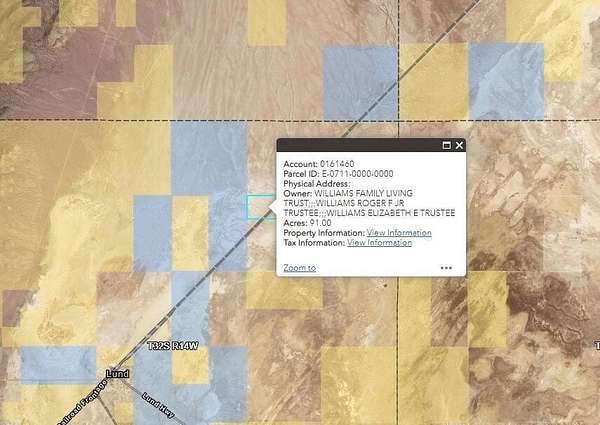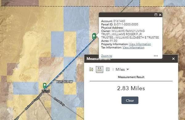 From Beryl HWY go North and turn right at railroad tracks and follow E Beryl Lund Railroad Frontage Road for 24 minutes (about 17.5 miles). Just 2.8 miles from Lund HWY. Look for listing sign on rt.