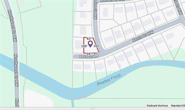 Excellent City of Atlanta infill lot opportunity! Vacant residential lot located at/near the intersection of Besto Dr NW and Randee St NW. Approximate lot dimensions are 59' frontage on Besto Dr NW, 41' frontage on Randee St NW, with depth/sides approximately 101' and 105' and rear line approximately 63' (+/- buyer to verify). Beautiful natural setting with mature trees and close proximity to Proctor Creek/greenspace area. Quiet neighborhood street with dead-end feel. Convenient in-town location with quick access to major roads and Atlanta amenities. Buyer to complete all due diligence regarding zoning, utilities, setbacks, site plan feasibility, and any required City of Atlanta approvals. Survey available upon request.