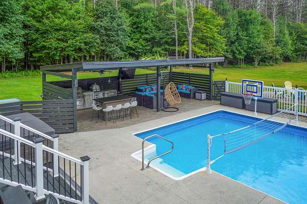 Luxurious Riverfront Retreat on 5 Private Acres 5 Bed | 6.5 Bath | 5 Acres | 300' River Frontage | 1,836 Sq Ft Garage One-of-a-kind, newly remodeled custom home on 5 private acres with 300 feet of direct frontage on the Androscoggin River. Located just 5 minutes from town, 10 minutes to Sunday River, and 15 minutes to Mt. Abram, this property offers luxury living with unmatched convenience. The home features 5 spacious bedroomsaEUR"each with its own private bathaEUR"plus a dedicated home office, multiple living areas, and a thoughtfully designed floor plan. The chef's kitchen includes commercial-grade appliances, pantry, and flows seamlessly into an open dining area. Step outside to your private oasis: a 20x40 heated saltwater in-ground pool, 7-8 person hot tub, outdoor kitchen, and poolside cabana. The second-floor primary suite includes a private balcony with river views and a spa-like ensuite with steam shower. Recreational spaces include a home theater, infrared sauna, and a game room with indoor skateboard ramp and gym. A large laundry room with 2 washers/2 dryers supports active living. The 1,836 sq ft heated garage features oversized doors for vehicles, RVs, and equipment. A framed two-bedroom in-law apartment above the garage is ready for finishingaEUR"ideal for guests or extended family. Bonus features:Brilliant Smart Home system, Whole-house water filtration with RO drinking water, 20kW standby generator, 3 RV hookups, Electric dog fence, 16-pair glove/boot dryer, Personal Whole-Body dryer and more This is a rare opportunity to own a fully updated, amenity-rich home in a tranquil riverfront settingaEUR"ideal for year-round living or as a luxury retreat. Motivated Seller! House is NOT in flood plain.