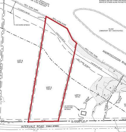 RARE ANDROSCOGGIN RIVERFRONT - Welcome to Lot #3, a gorgeous 5.02 acre parcel of land with 350 feet of water frontage. Intervale Road Subdivision introduces six private wooded homesites in Bethel ranging from 2.96 to 8.92 acres, each offering significant frontage along the River and access from Intervale Road. Opportunities to purchase large acreage riverfront lots in this part of western Maine are increasingly rare, making this a truly unique offering. These spacious parcels provide the ideal setting for custom homes surrounded by forest, mountain air, and the quiet presence of the river below. The terrain remains relatively level from the road before gradually transitioning toward elevated riverbanks that overlook the Androscoggin River corridor. With thoughtful clearing, homes may capture beautiful river views along with mountain ridgelines to the north and northwest. The generous lot sizes provide flexibility for home placement while preserving privacy and natural surroundings. Whether you envision a mountain getaway, a year-round residence, or a custom retreat designed around Maine's outdoor lifestyle, these homesites offer an exceptional canvas to bring that vision to life. Located just 20 minutes from Sunday River Resort, future owners will enjoy easy access to world class skiing, snowboarding, mountain biking, golf, hiking, and countless outdoor adventures throughout the western Maine mountains. Bethel's welcoming village is only minutes away and offers restaurants, shops, events, and small-town charm year-round. The surrounding region is known for its four-season recreation, scenic mountain landscapes, and access to some of the most beautiful natural areas in Maine. With acreage, river frontage, and close proximity to Sunday River, these lots present a rare chance to curate something special in one of Maine's premier destinations.