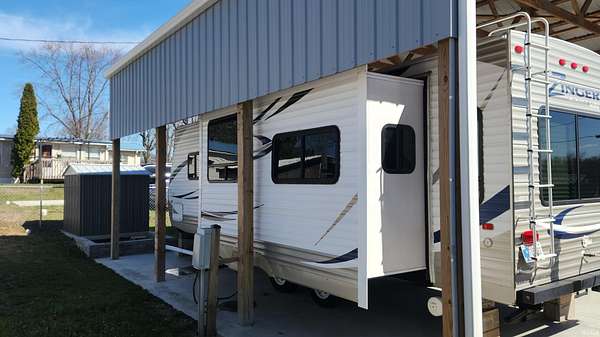 Welcome to four lots side by side in Foxwood Hills. Included is a 2011 Crossroads Zinger travel trailer, conveniently parked in the pavilion. Two newer metal-sided storage sheds provide room for personal property. Enjoy peace of mind to let your pups run inside the chain link fence area. Foxwood Hills is on the shores of Cass Lake, with a beach area and a boat launch. It is a nice, peaceful location and a practical way to get away and enjoy some family time - or simply a place to stay instead of hotels. It's a gated community with water available from April to October. Convenient proximity to the tourism attractions and the RV industry of Lagrange and Elkhart counties.