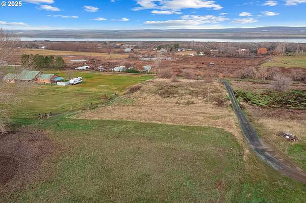 This 2.33-acre lot is terraced into two flat sections and overlooks the Columbia River. The upper level provides a level site for a home, positioned to take advantage of the river views. The lower portion of the property is also flat and includes a solid-set irrigation system, making it suitable for gardening or agricultural use.The property includes water rights through the West Extension Irrigation District. This layout offers a clear distinction between the residential building area and the functional land below. Buyers are advised to conduct their own due diligence regarding building requirements, utility hookups, and the specifics of the water rights.