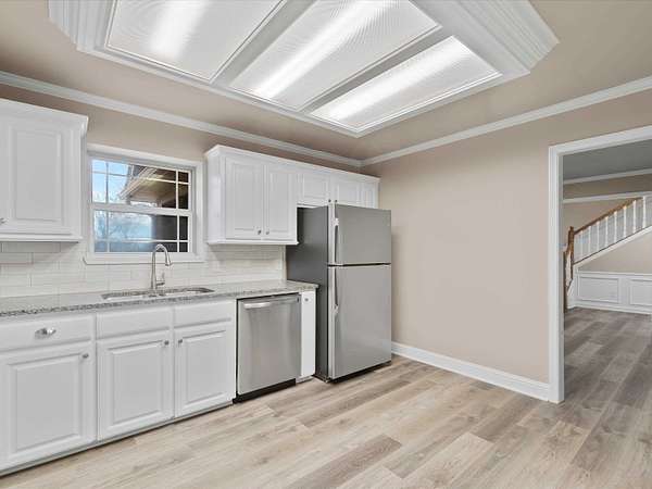 This stunning fully remodeled 4-bedroom, 2-bath home is a true showstopper, offering timeless design and exceptional use of space throughout. From the moment you step inside, you'll notice the beautiful crown molding, custom details, and a cohesive, neutral paint palette that elevates every room. The main living area features a cozy fireplace with custom built-in shelving, creating a warm and inviting focal point. The massive custom kitchen is a dream--complete with abundant cabinetry, stainless steel appliances, granite countertops, and a spacious formal dining area perfect for hosting. The primary suite is impressively large and luxurious, featuring a spa-like main bath with a separate soaking tub and shower, double-sink built-in vanity with excellent lighting, a dedicated vanity area for getting ready, and an enormous walk-in closet with extensive shelving and storage. Upstairs, you'll find three additional bedrooms and a full bath, along with beautifully crafted custom railing and a charming round window that adds character and ambiance. Every detail has been thoughtfully designed to impress. Outside, the home sits on 2.26 acres of gently rolling hills, offering expansive views and endless possibilities--plenty of room for a hobby farm, or additional improvements. The large outdoor deck is ideal for entertaining and enjoying the serene setting. Adding even more value is a separate guest home, perfect for extended family or as a rental opportunity to help offset the mortgage. Gorgeous, functional, and full of custom touches, this property combines space, style, and versatility in a great location. Don't miss the chance to own a truly exceptional home.