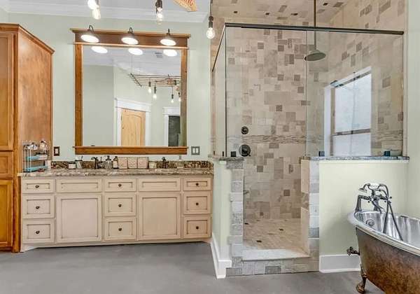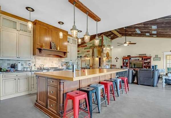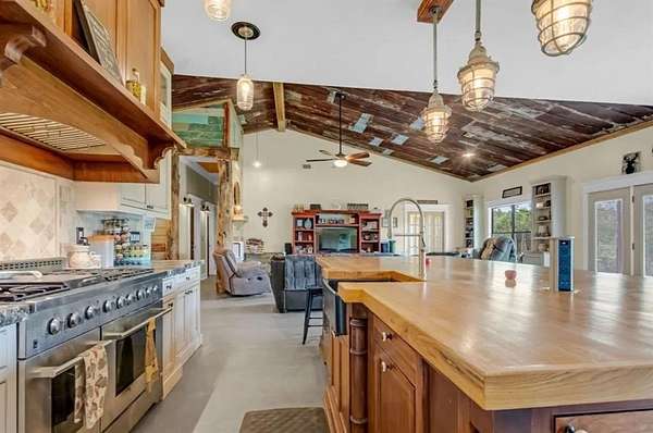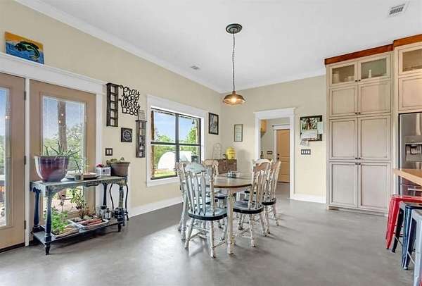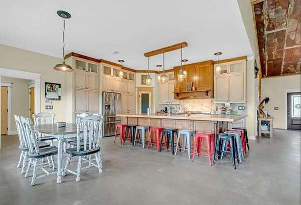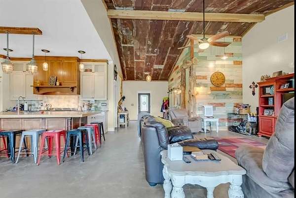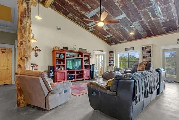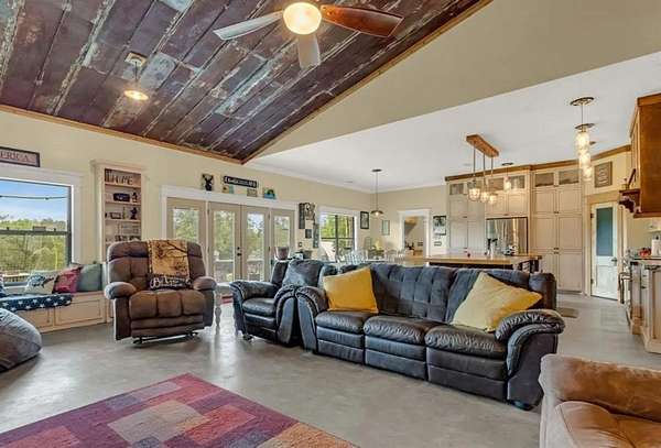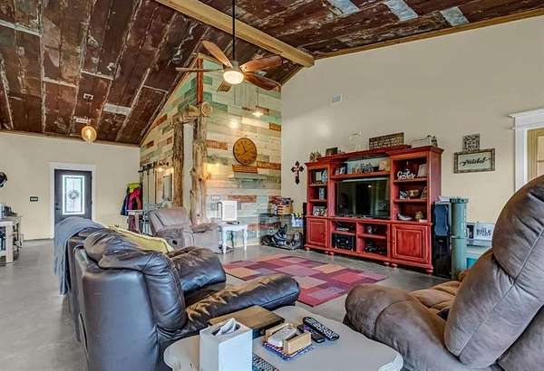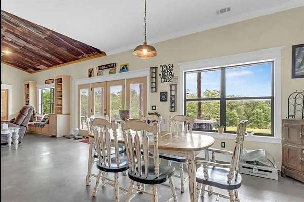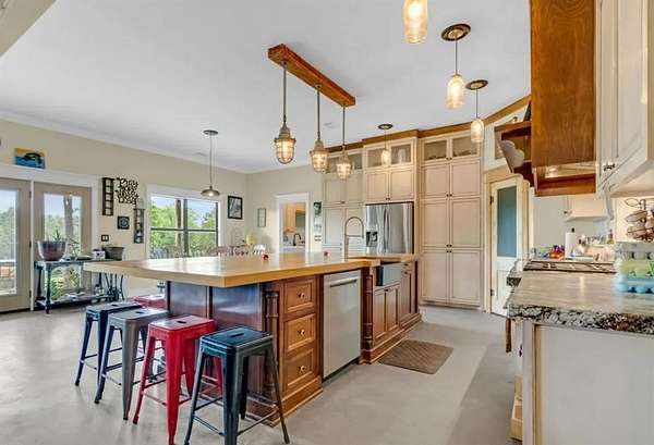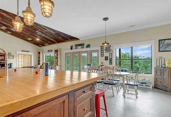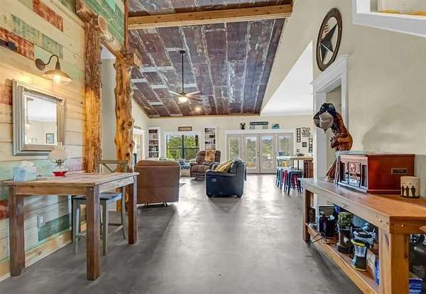 Outdoors, the land is a standout feature and truly one-of-a-kind. The property includes a spring-fed, approximately 2-acre stocked pond with bass, crappie, catfish, bluegill, red ear, and minnows. A year-round creek runs north to south through the property, with an additional 5 acres that cross over Big Sandy Creek, offering rare creek frontage and recreational opportunities.