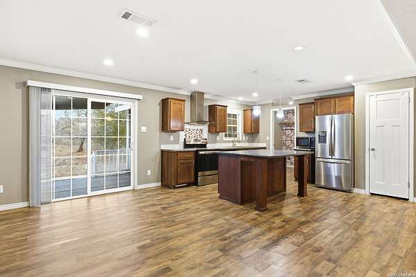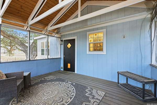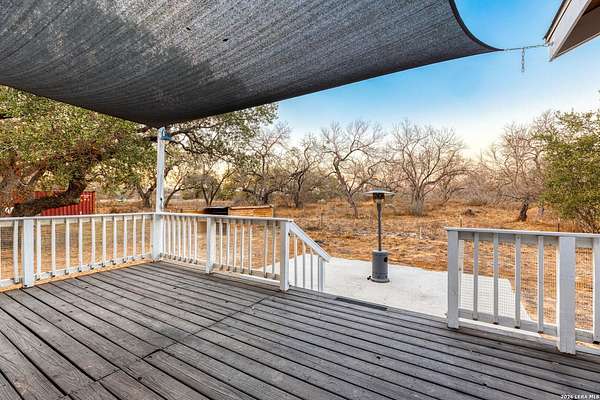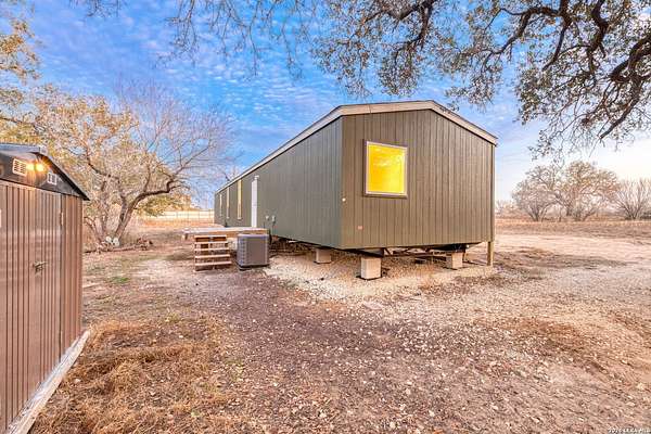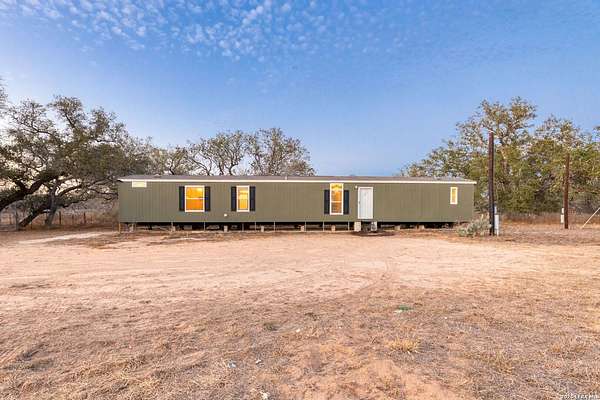 Experience the versatility and wide-open potential of this unique 21-acre property featuring two separately addressed tracts being sold together. With two independent residences, this property offers flexible living arrangements and potential income-producing opportunities. Each home includes its own septic system, power, and water connections, allowing for independent functionality on both tracts. The primary residence, situated on approximately 11.13 acres, is a 2018 double-wide manufactured home offering 3 bedrooms, 2 bathrooms, and approximately 1,440 square feet. The open-concept layout features an island kitchen, spacious living area, and a primary suite with separate tub and shower. Outdoor amenities include a back deck with attached screened porch (Florida room) and an animal pen. The second residence, located on approximately 10.16 acres, is a 2022 single-wide manufactured home offering 3 bedrooms, 2 bathrooms, and approximately 1,216 square feet. This tract also includes a back shed and animal pen. Additional improvements include a gated entry and a large on-site shipping container with professionally installed power outlet suitable for RV hookup, along with an RV septic connection. The land provides opportunities for agricultural and recreational use, offering space for equipment, livestock, or outdoor activities. Whether seeking multi-household flexibility, agricultural use, or the option to reside in one home while generating income from the other, this property presents a range of possibilities in a serene country setting with expansive skies and scenic sunset views. Conveniently located approximately 12 miles from Devine, under an hour to downtown San Antonio, and about 45 minutes to Lackland AFB.