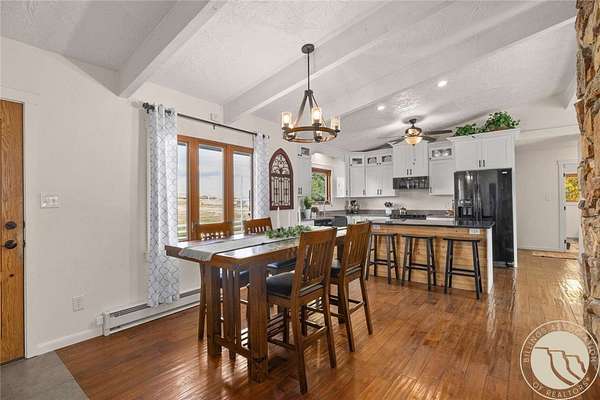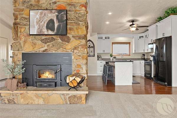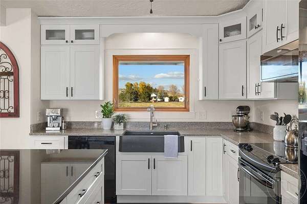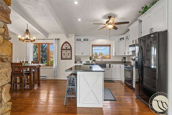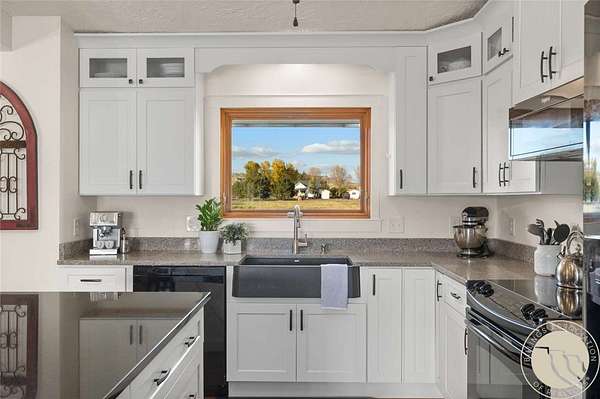 This peaceful, beautiful home has it all! 17.2 irrigated acres with 3 cross fenced pastures, a private pond, Canyon Creek access, beautiful views on a secluded road and 6 miles from prime shopping. This well insulated home has top of the line Pella windows and a high efficiency wood fireplace insert. The oversized 2 car garage has been insulated and a wood stove installed to make this a comfortable man cave. Meet all your animal needs in the 30x60 barn with 3 stalls, plenty of hay storage, tack room, corral, round pen and 3 acre pasture with goat fencing. This gated property has tons of space to park all your toys and a private pond that will certainly be your own private oasis. This property has so much character and opportunity for that person looking to have property close to town and still have a quiet farm to retreat to. Feel free to ask about a complete drone tour of the property.