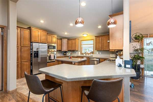 Experience the best of Montana living on 3.15 peaceful acres in Billings' desirable West End. This single-level home blends comfort and function with wide-open space for your lifestyle. Step inside to an open-concept layout designed for gathering and everyday ease. The kitchen is a true centerpiece, featuring a large island with extra countertop seating. A dedicated dining room offers space for dinners or hosting friends. The primary suite features dual sinks, a soaking tub, and a separate shower. Two additional bedrooms and a second bath round out the thoughtful floorplan. Outside, you'll find room for all your Montana toys-boats, RVs, trailers, and more-with an oversized 3-car garage. This property is all about the freedom and space of rural life while still being close to Billings conveniences. Enjoy the wide-open skies, elbow room, and lifestyle you've been dreaming of.