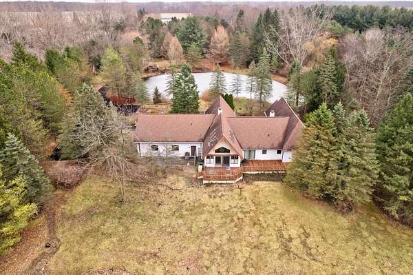 This extraordinary residence offers an unparalleled blend of luxury and country tranquility that will captivate your heart from the moment you arrive. Nestled within a breathtaking setting featuring two serene ponds, this four to five-bedroom, six-bathroom home delivers over three thousand square feet of thoughtfully designed living space. The primary suite serves as your personal retreat, complete with a cozy fireplace and generous walk-in closet. Here's something you don't see every day—every bedroom boasts its own full bathroom, providing convenience and privacy for all residents. Access the expansive deck from any main floor bedroom, where peaceful views await. The finished basement takes versatility to new heights with a complete one-bedroom apartment, perfect for guests or potential rental income. Outside, a spacious thirty-two by twenty-four pole barn provides ample storage for vehicles, equipment, or workshop dreams. Whether you're sipping morning coffee overlooking the ponds or hosting gatherings on the deck, this property promises a lifestyle most only dream about. Schedule your private tour today and discover what makes this home truly exceptional.