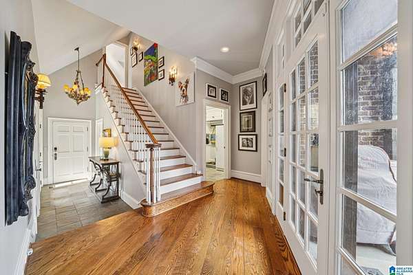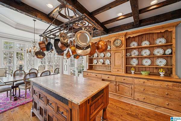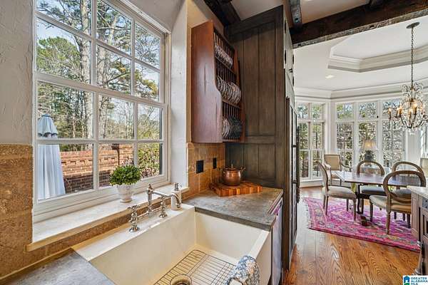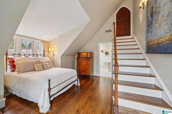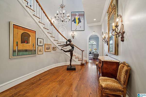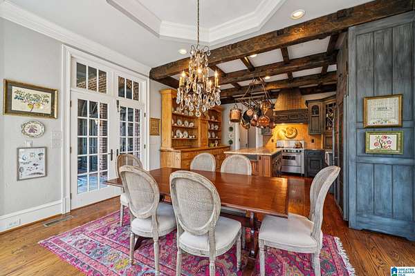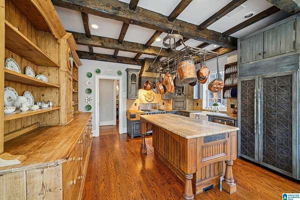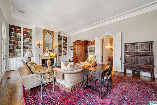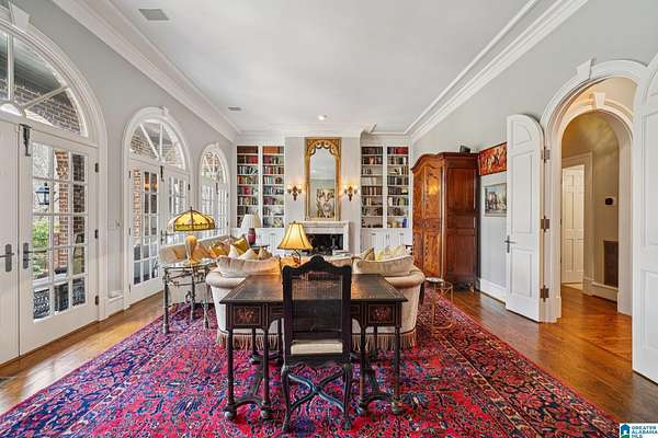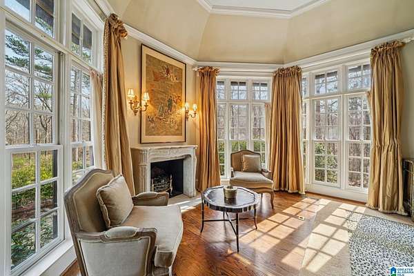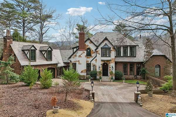 A rare, custom estate nestled on almost 4 wooded acres in Shoal Creek, this European Country Manor blends history, craftsmanship & privacy. Designed/built by an engineer executive w/meticulous detail, it features slate roof, 6 imported European antique gas FP's, heart pine floors & timeless architectural details throughout. Clear-water creek, lush woods & meadows create a stunning backdrop for gatherings or quiet evenings. Soaring ceilings, dramatic curved staircase, paneled library that connects to primary suite, banquet-sized DR & grand LR open to covered porches & slate terraces overlooking the walled English garden. Gourmet kitchen w/Sub-Zero, FiveStar range, custom cabinetry & artisan finishes. Owners' suite offers radiant-heated marble BA, spa tub, oversized shower, sitting area & terrace access. 2nd primary + 3 ensuite BR's up + partial fin. bsmt w/music studio. Recent updates: HVAC ('23-'24), copper ridge caps, drainage rebuild, smart home features, irrigation...plus more!!!