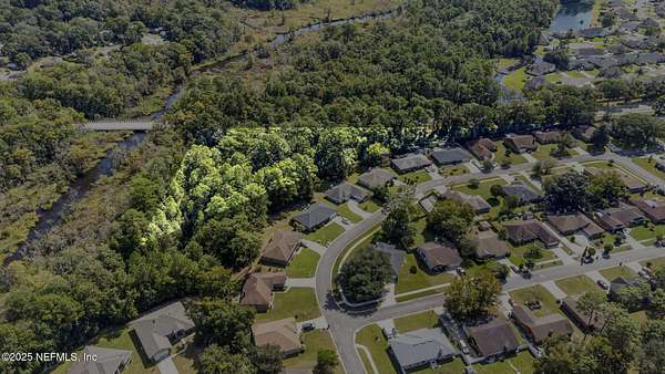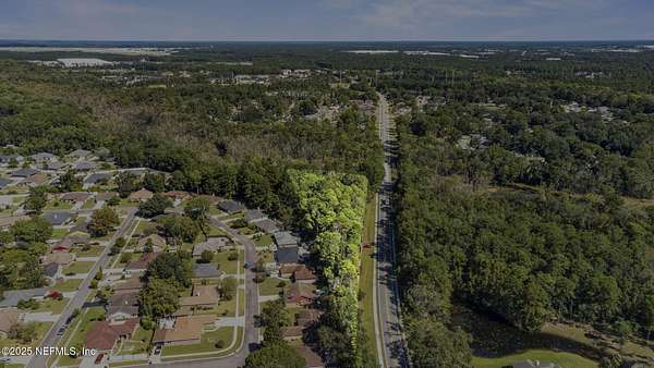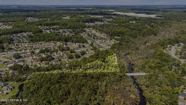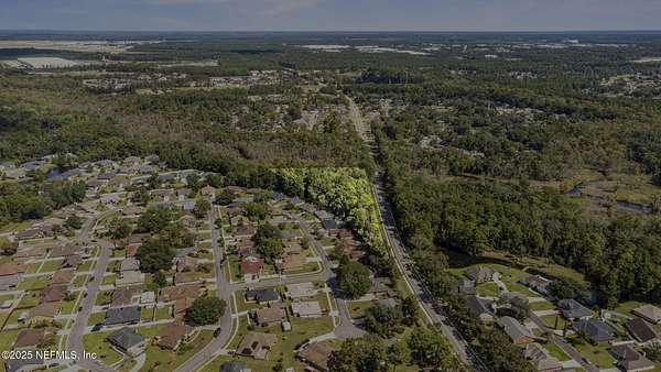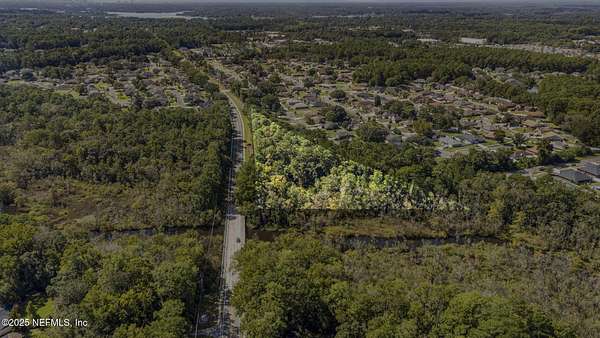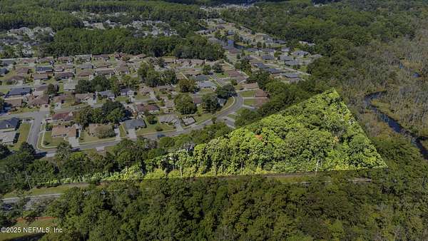 We have a lender available who can finance land loans, contact us for details! The property is designated low-density residential with the potential to build 3 to 7 homes per acre, subject to other planning rules. 12 Mins from JAX International Airpot. Aerial view showcasing the expansive wooded lot tucked behind an established neighborhood. The property offers privacy with mature trees, direct road frontage, and natural surroundings backing up to a creek. Perfect opportunity to build or invest in land with both convenience and seclusion.