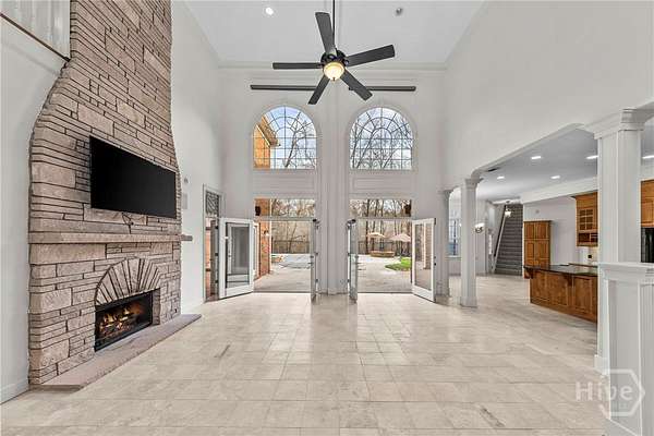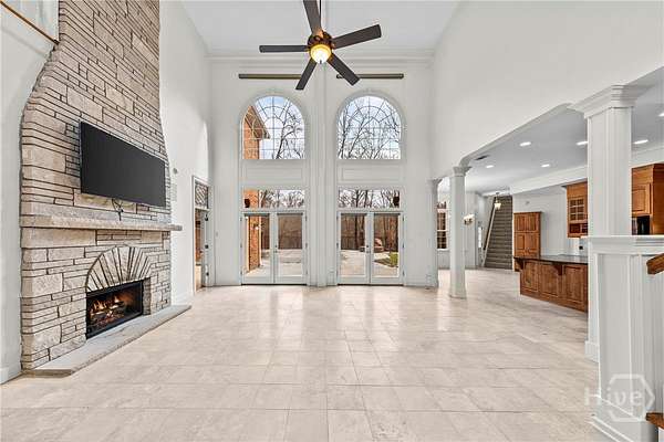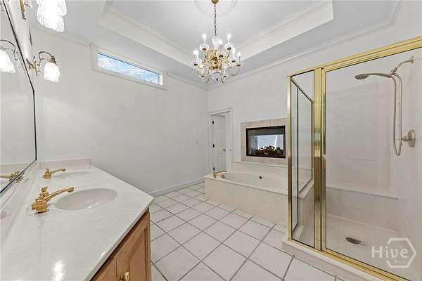 - Breakfast Area, Breakfast Bar, Double Vanity, Entrance Foyer, Garden Tub/Roman Tub, Gourmet Kitchen, High Ceilings, Kitchen Island, Main Level Primary, Primary Suite, Separate Shower, Tray Ceiling(s), Vaulted Ceiling(s)