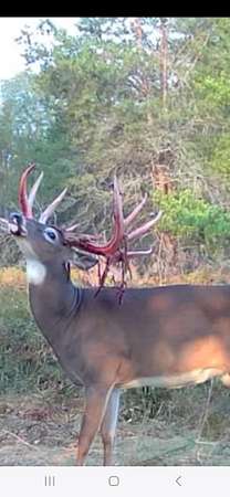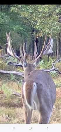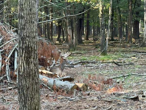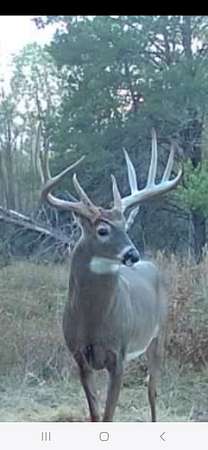 The diverse rolling terrain is completely wooded with a mixture of oaks and pines. The native bedding grass areas, a pond and a watering hole are fed by a solar powered well. Great habitat for this healthy whitetail herd.