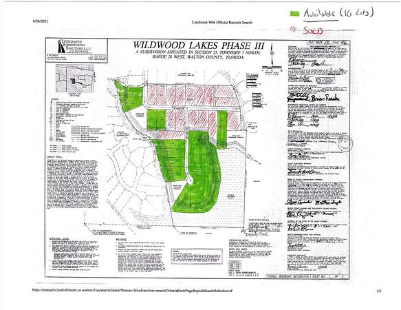 1.57 acre lot Zoned Rural Village. Flood Zone is X. The lot is cleared cleared and filled and an existing paved road with a cul-de-sac. Can be sold individually or all 16 lots. Another option : pick your lot and work with SHS, a local Walton County Builder. AVERAGE BUILD TIME 4 MONTHS. Wildwood Lakes Phase III offers a fully approved residential development of 16 single-family homes in an up-and-coming market. Prime position 1 mile off US 90 and just 15 minutes from US 331 and I-10, able to reach Destin and Fort Walton in less than an hour. These nearby connections will place employment and recreation hubs at residents' fingertips. The area is rich with natural foliage dotted by clear cold-water springs and bounded by sparkling white sand beaches, providing endless opportunities for outdoor recreation. The Eagle Springs Golf and Recreation Park is approximately 5 miles away and quickly accessible via US 90. The area also provides abundant high-quality shopping and dining options. National retailers, including Walmart Supercenter, Winn-Dixie, Lowe's, Walgreens, Tractor Supply Co., Starbucks, Chick-fil-A, Taco Bell, and many more, are located within just 10 miles. MOTIVATED SELLER, BRING ALL OFFERS. More lots/ land available.